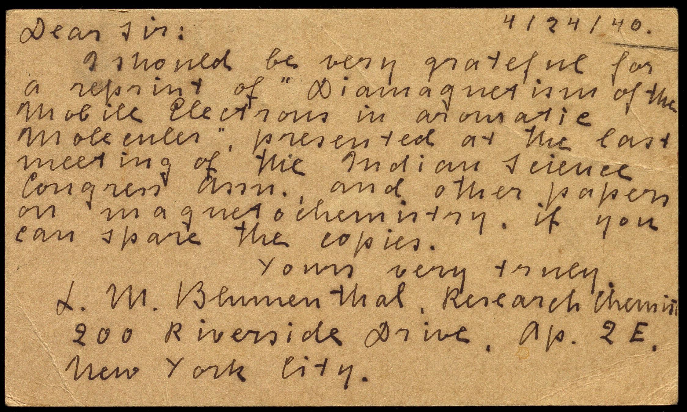 Copyright may not have been assigned to Archives, National Centre for Biological Sciences. The Archives at NCBS makes no representation that it is the copyright owner in all of its collections. The user must obtain all necessary rights and clearances before use of material and material may only be reproduced for academic and non-commercial use. See: https://archives.ncbs.res.in/access. In its capacity as an academic and educational centre, the Archives at NCBS is making digital objects available online for open viewing and research purposes. If you are the rightsholder or a representative of the rightsholder and would like to restrict access to any digital object displayed, please do reach out to us: https://archives.ncbs.res.in/takedown