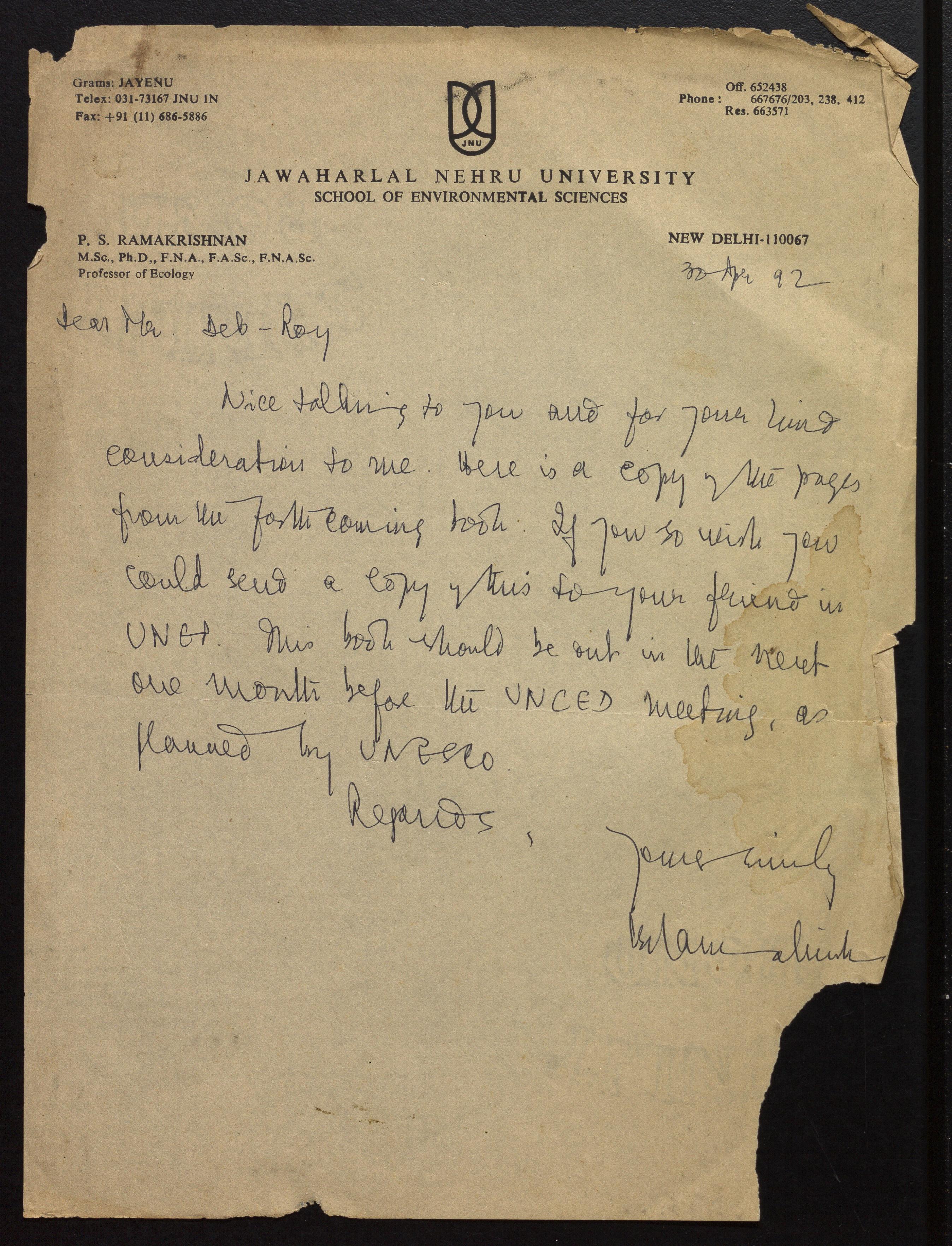 Copyright may not have been assigned to Archives, National Centre for Biological Sciences. The Archives at NCBS makes no representation that it is the copyright owner in all of its collections. The user must obtain all necessary rights and clearances before use of material and material may only be reproduced for academic and non-commercial use. See: https://archives.ncbs.res.in/access. In its capacity as an academic and educational centre, the Archives at NCBS is making digital objects available online for open viewing and research purposes. If you are the rightsholder or a representative of the rightsholder and would like to restrict access to any digital object displayed, please do reach out to us: https://archives.ncbs.res.in/takedown