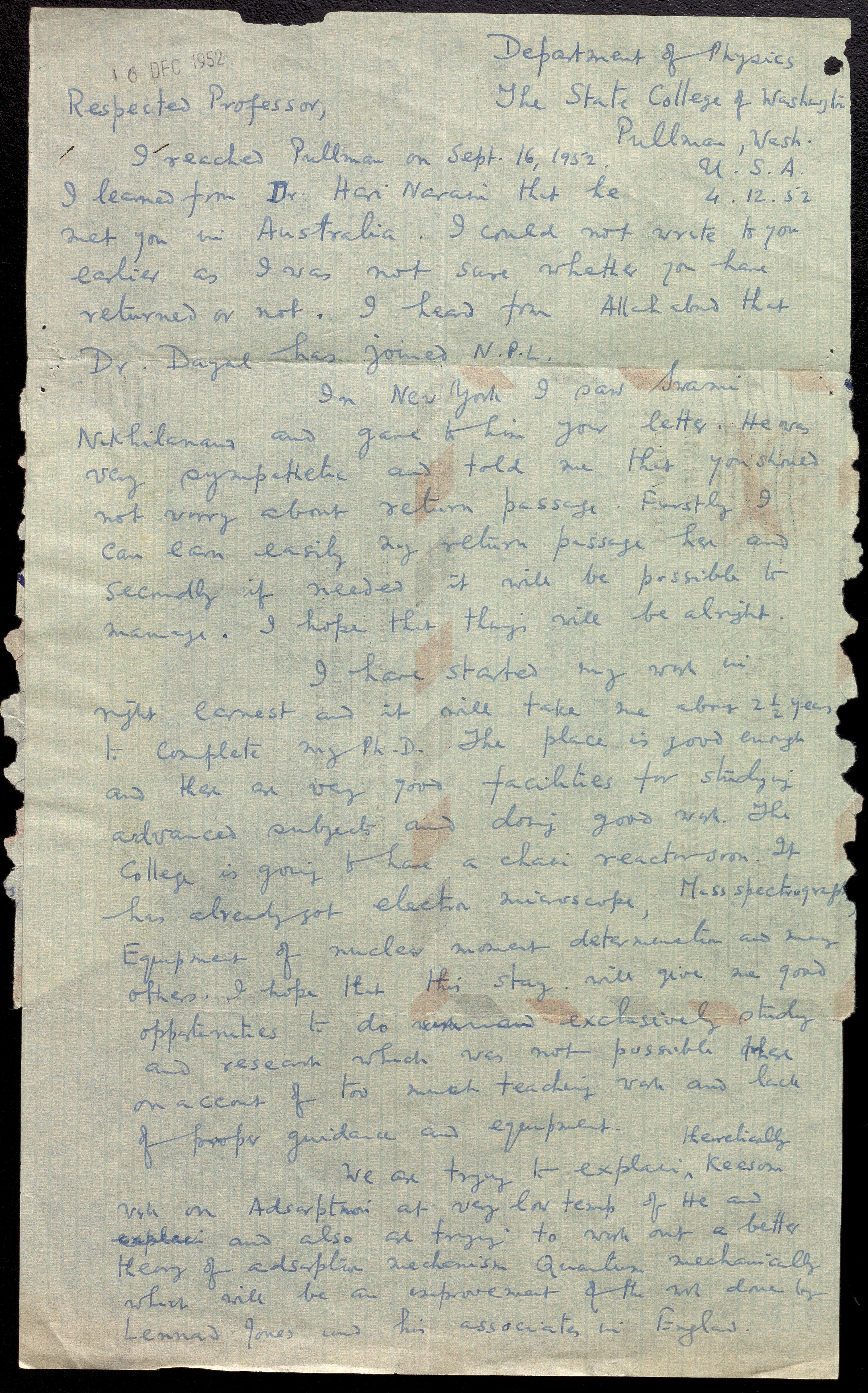 Copyright may not have been assigned to Archives, National Centre for Biological Sciences. The Archives at NCBS makes no representation that it is the copyright owner in all of its collections. The user must obtain all necessary rights and clearances before use of material and material may only be reproduced for academic and non-commercial use. See: https://archives.ncbs.res.in/access. In its capacity as an academic and educational centre, the Archives at NCBS is making digital objects available online for open viewing and research purposes. If you are the rightsholder or a representative of the rightsholder and would like to restrict access to any digital object displayed, please do reach out to us: https://archives.ncbs.res.in/takedown
