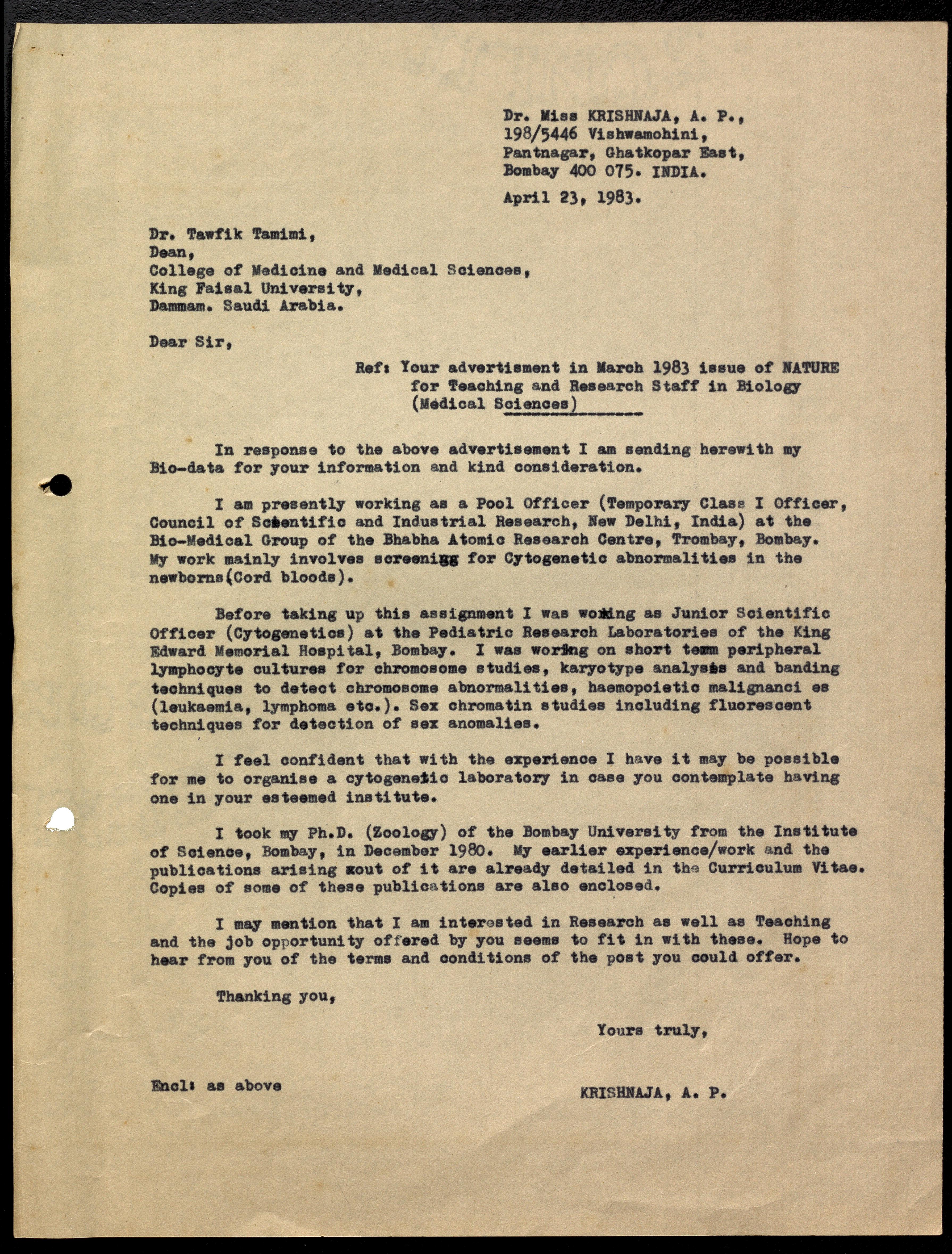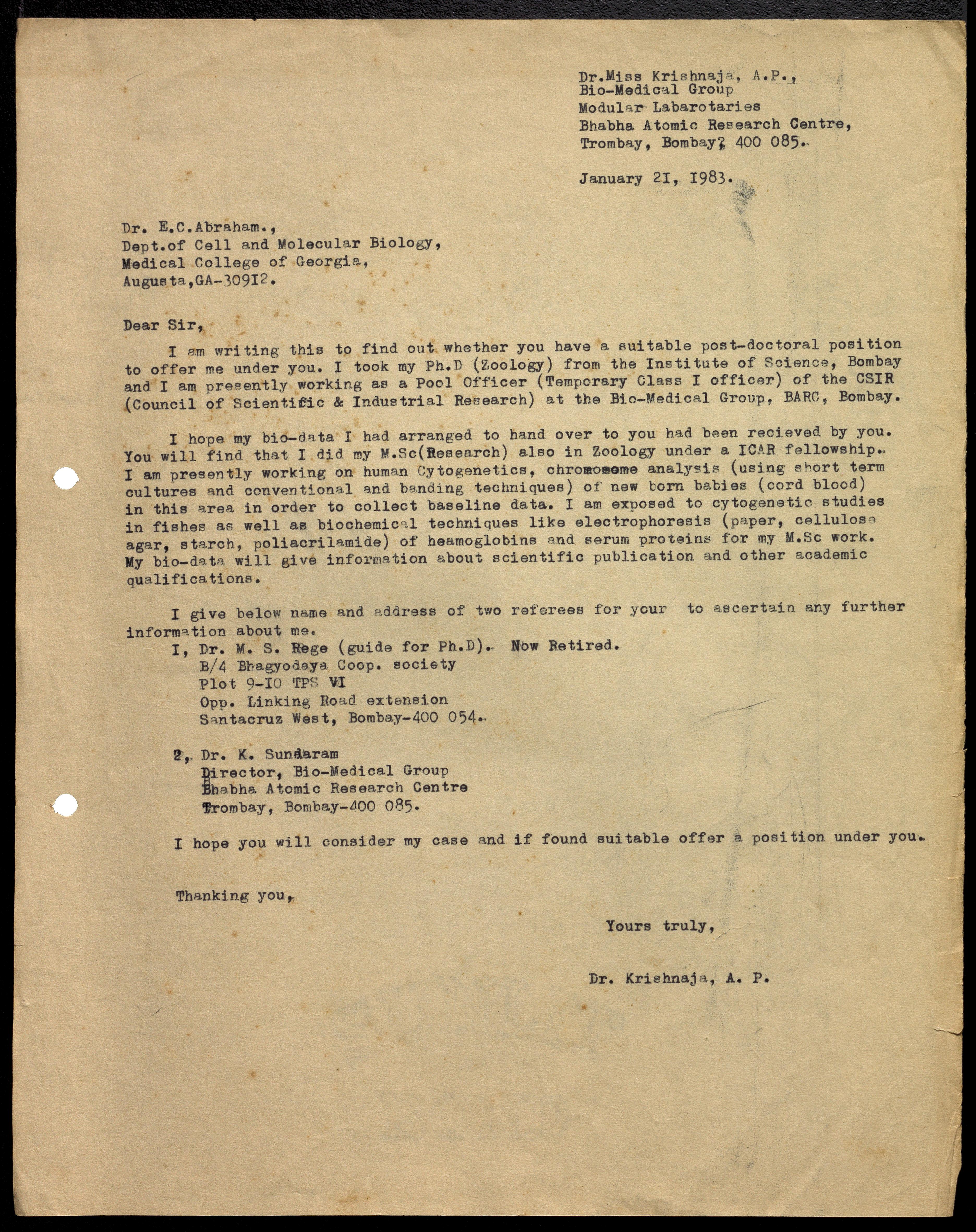 Copyright may not have been assigned to Archives, National Centre for Biological Sciences. The Archives at NCBS makes no representation that it is the copyright owner in all of its collections. The user must obtain all necessary rights and clearances before use of material and material may only be reproduced for academic and non-commercial use. See: https://archives.ncbs.res.in/access. In its capacity as an academic and educational centre, the Archives at NCBS is making digital objects available online for open viewing and research purposes. If you are the rightsholder or a representative of the rightsholder and would like to restrict access to any digital object displayed, please do reach out to us: https://archives.ncbs.res.in/takedown