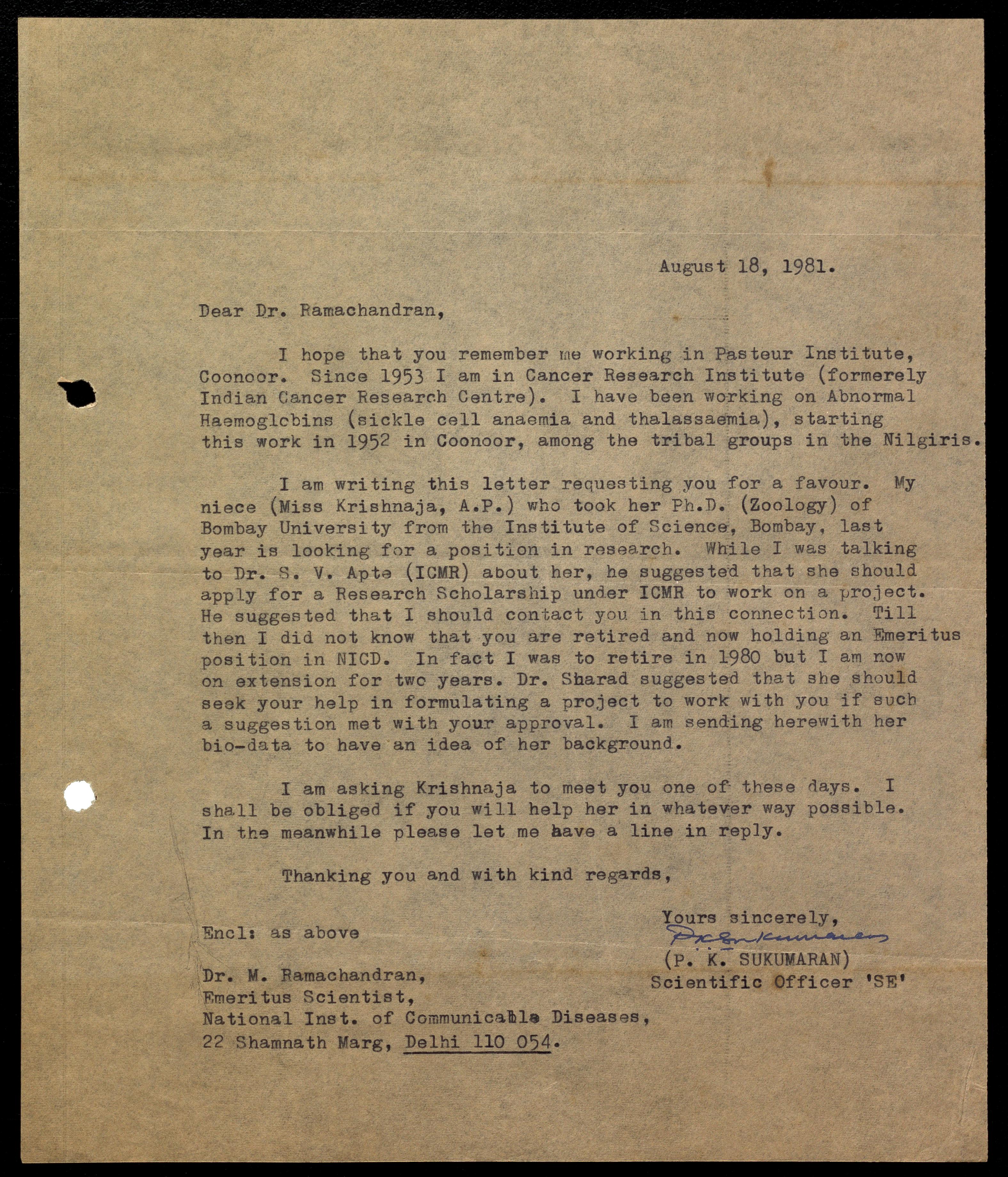 Copyright may not have been assigned to Archives, National Centre for Biological Sciences. The Archives at NCBS makes no representation that it is the copyright owner in all of its collections. The user must obtain all necessary rights and clearances before use of material and material may only be reproduced for academic and non-commercial use. See: https://archives.ncbs.res.in/access. In its capacity as an academic and educational centre, the Archives at NCBS is making digital objects available online for open viewing and research purposes. If you are the rightsholder or a representative of the rightsholder and would like to restrict access to any digital object displayed, please do reach out to us: https://archives.ncbs.res.in/takedown