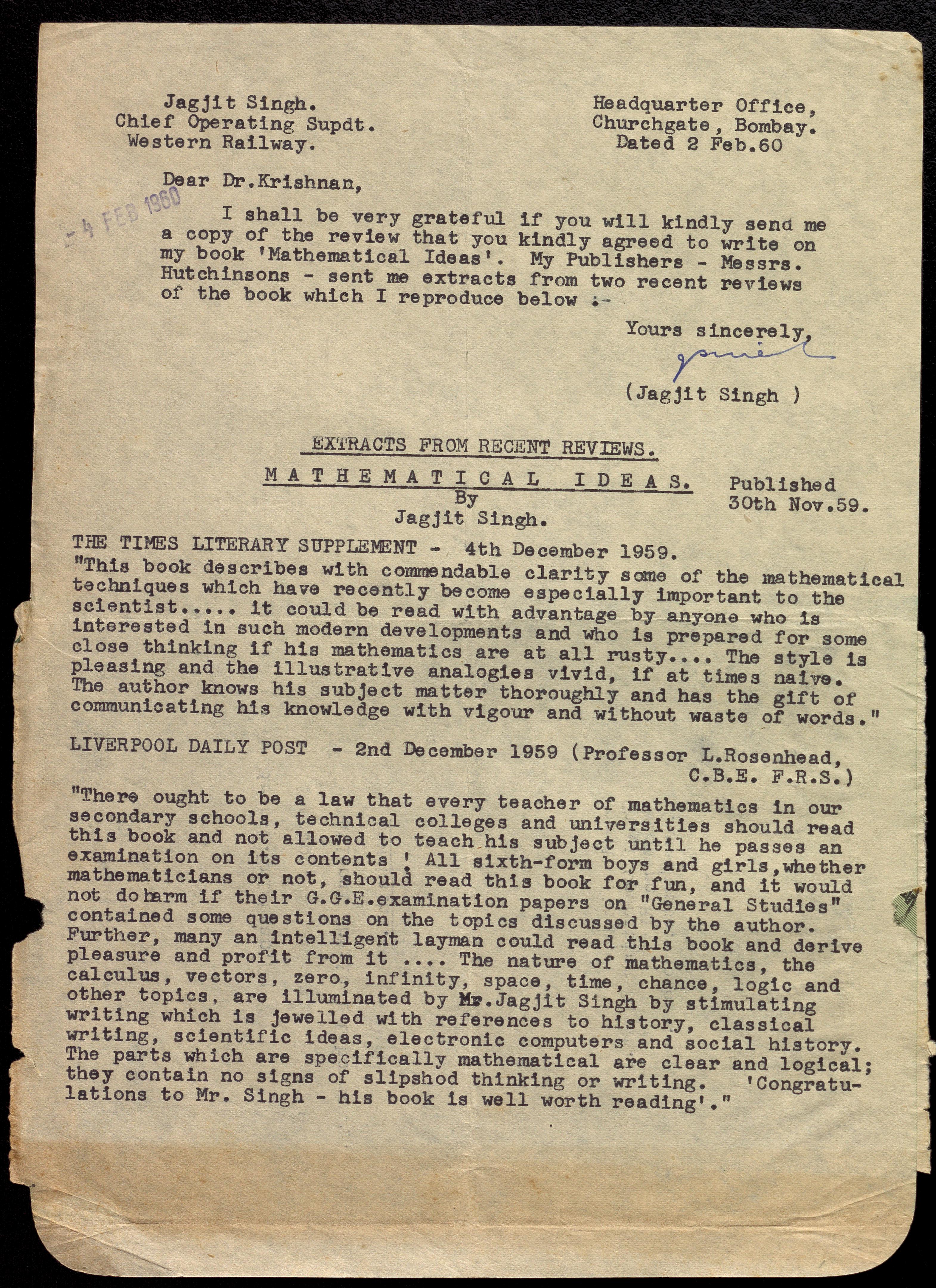 Copyright may not have been assigned to Archives, National Centre for Biological Sciences. The Archives at NCBS makes no representation that it is the copyright owner in all of its collections. The user must obtain all necessary rights and clearances before use of material and material may only be reproduced for academic and non-commercial use. See: https://archives.ncbs.res.in/access. In its capacity as an academic and educational centre, the Archives at NCBS is making digital objects available online for open viewing and research purposes. If you are the rightsholder or a representative of the rightsholder and would like to restrict access to any digital object displayed, please do reach out to us: https://archives.ncbs.res.in/takedown