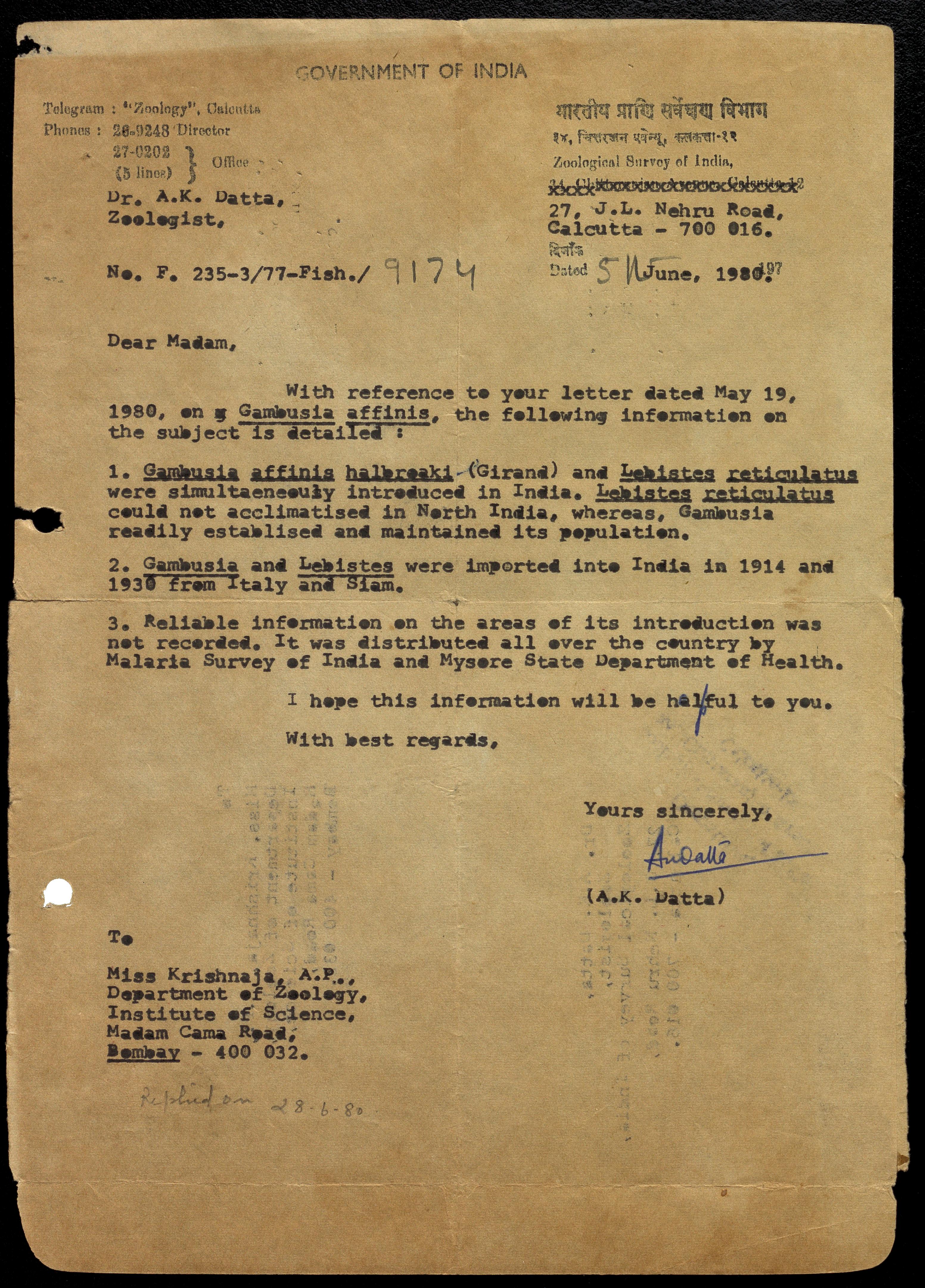 Copyright may not have been assigned to Archives, National Centre for Biological Sciences. The Archives at NCBS makes no representation that it is the copyright owner in all of its collections. The user must obtain all necessary rights and clearances before use of material and material may only be reproduced for academic and non-commercial use. See: https://archives.ncbs.res.in/access. In its capacity as an academic and educational centre, the Archives at NCBS is making digital objects available online for open viewing and research purposes. If you are the rightsholder or a representative of the rightsholder and would like to restrict access to any digital object displayed, please do reach out to us: https://archives.ncbs.res.in/takedown