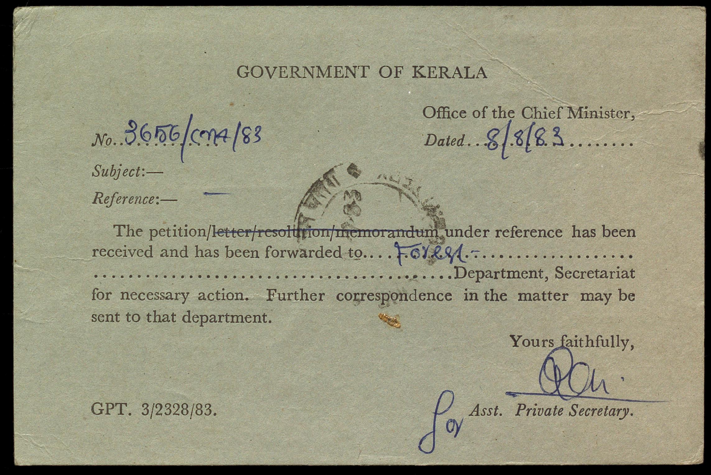 Copyright may not have been assigned to Archives at NCBS. Permission for reproduction or distribution must be obtained in writing from the Archives at NCBS (archives@ncbs.res.in). The Archives at NCBS makes no representation that it is the copyright owner in all of its collections. The user is responsible for obtaining all necessary rights and clearances before use of material. Please see Access Guidelines, https://archives.ncbs.res.in/access