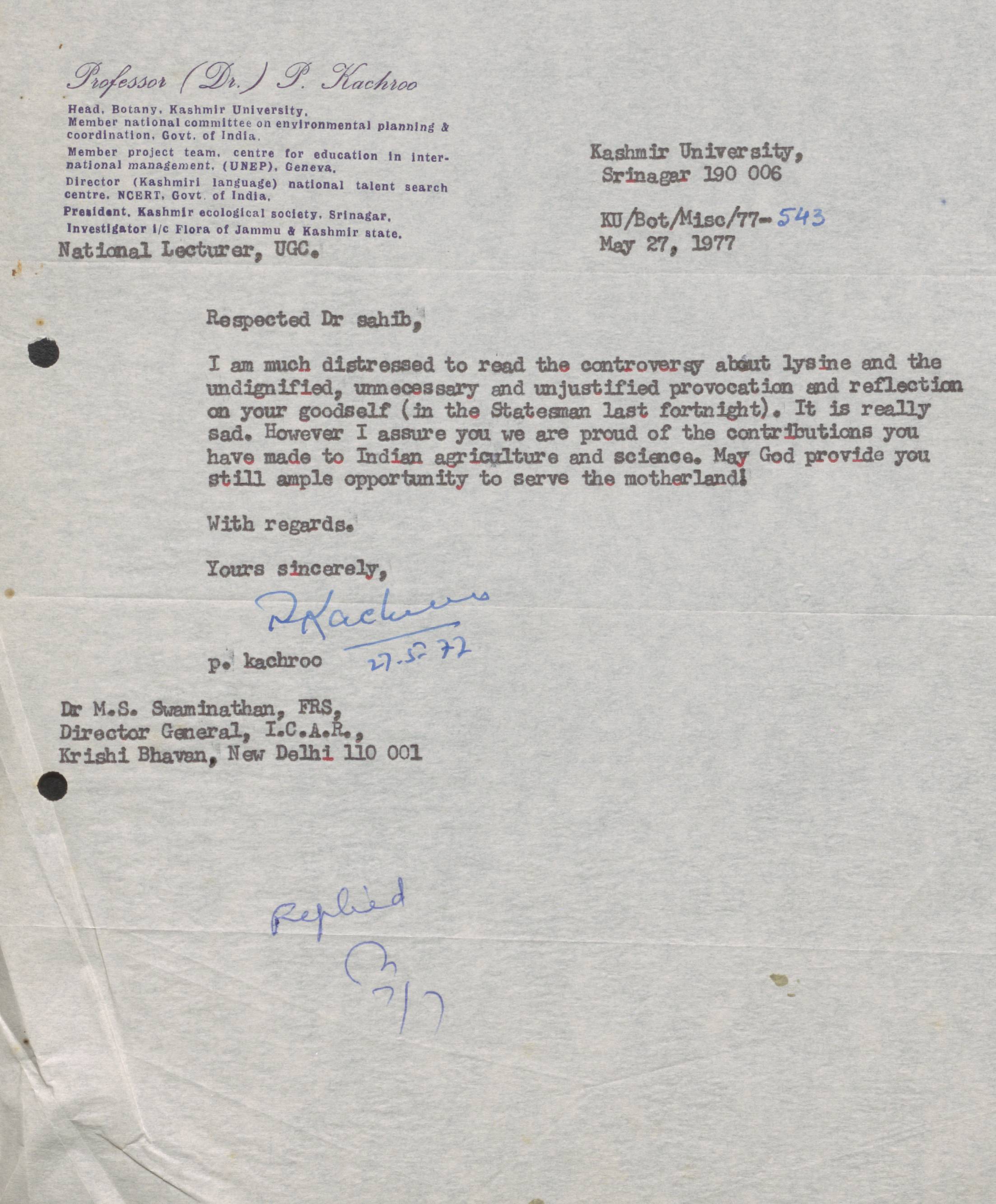 Copyright may not have been assigned to Archives, National Centre for Biological Sciences. The Archives at NCBS makes no representation that it is the copyright owner in all of its collections. The user must obtain all necessary rights and clearances before use of material and material may only be reproduced for academic and non-commercial use. See: https://archives.ncbs.res.in/access. In its capacity as an academic and educational centre, the Archives at NCBS is making digital objects available online for open viewing and research purposes. If you are the rightsholder or a representative of the rightsholder and would like to restrict access to any digital object displayed, please do reach out to us: https://archives.ncbs.res.in/takedown
