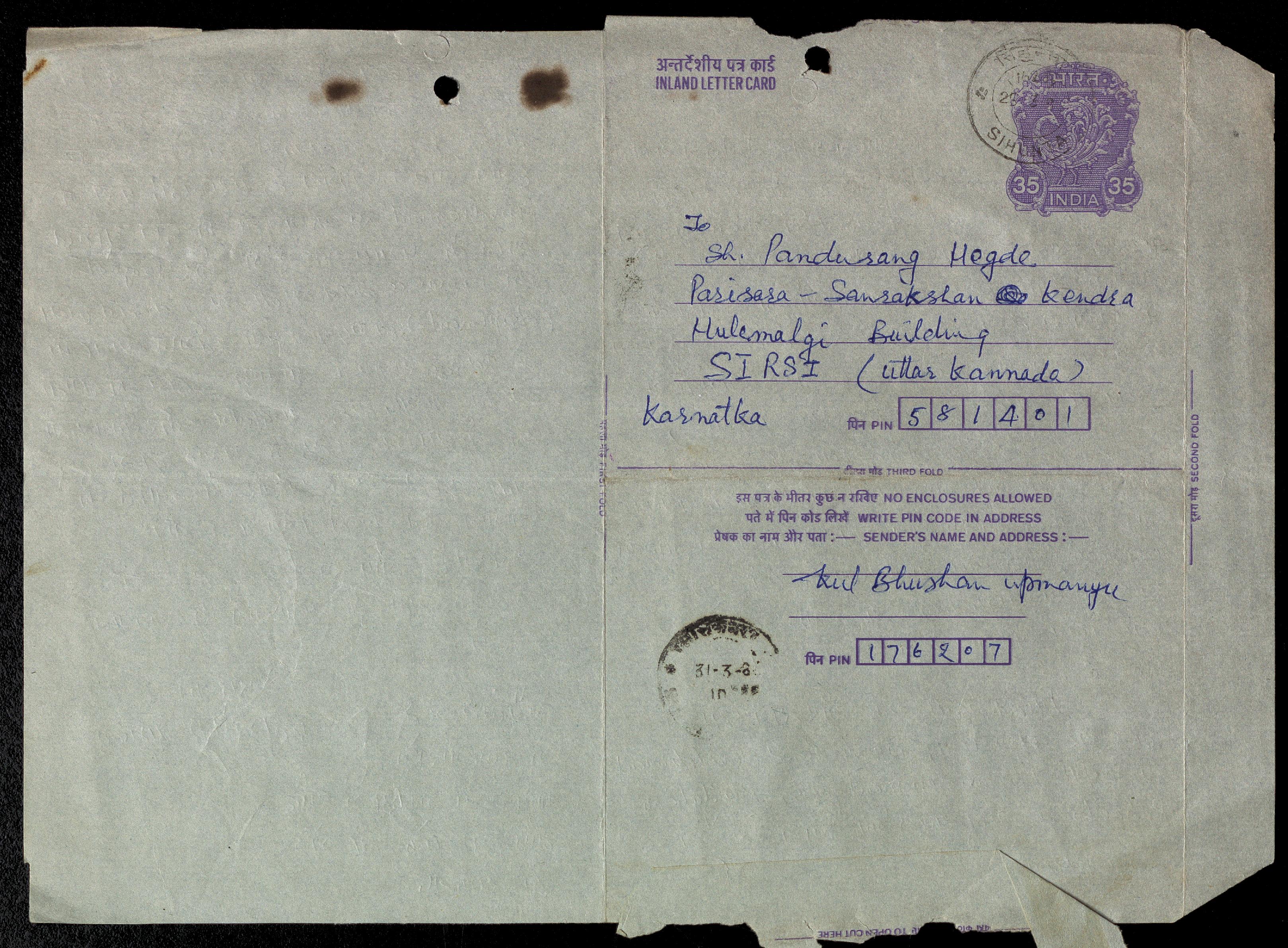 Copyright may not have been assigned to Archives, National Centre for Biological Sciences. The Archives at NCBS makes no representation that it is the copyright owner in all of its collections. The user must obtain all necessary rights and clearances before use of material and material may only be reproduced for academic and non-commercial use. See: https://archives.ncbs.res.in/access. In its capacity as an academic and educational centre, the Archives at NCBS is making digital objects available online for open viewing and research purposes. If you are the rightsholder or a representative of the rightsholder and would like to restrict access to any digital object displayed, please do reach out to us: https://archives.ncbs.res.in/takedown
