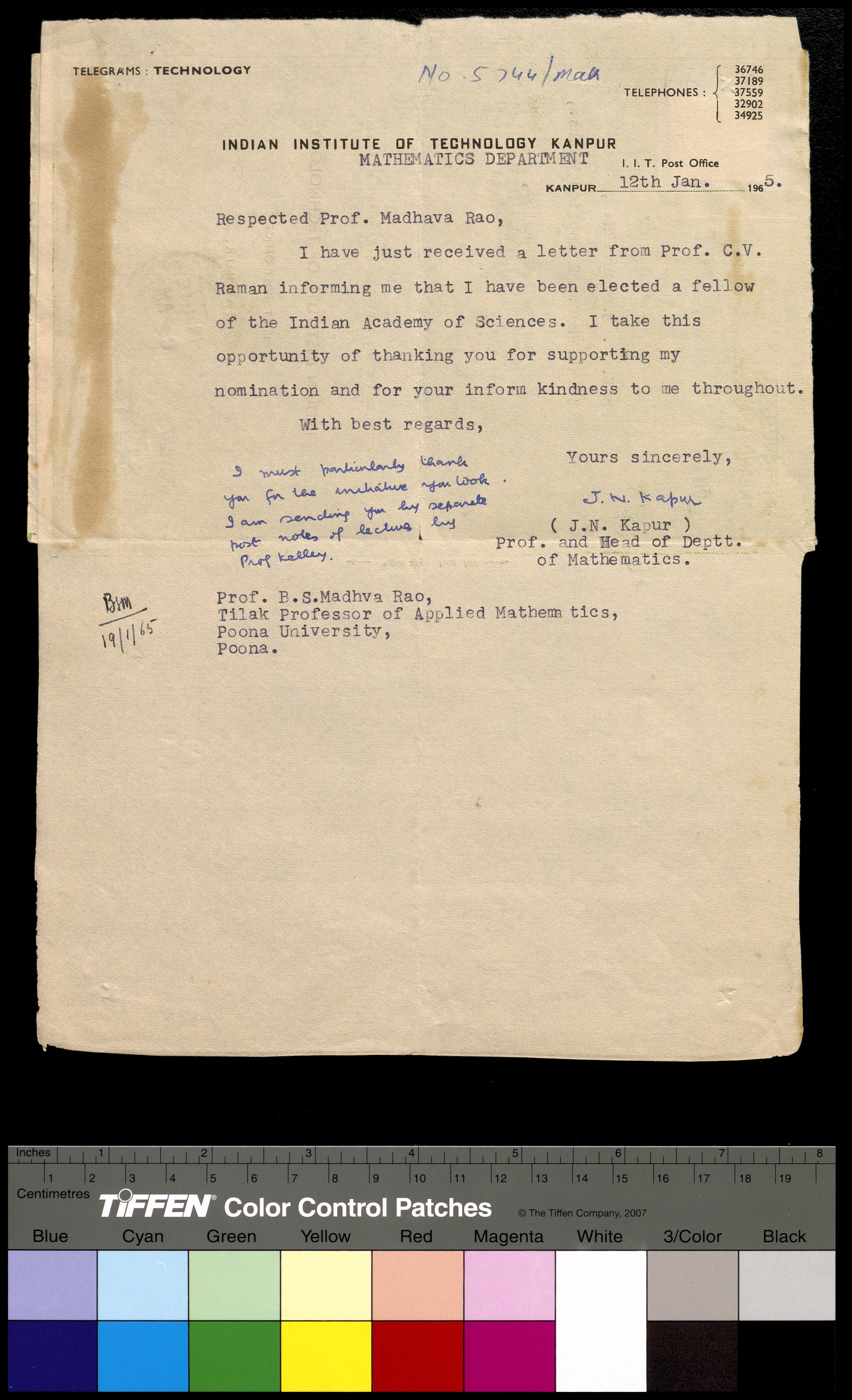 Copyright may not have been assigned to Archives, National Centre for Biological Sciences. The Archives at NCBS makes no representation that it is the copyright owner in all of its collections. The user must obtain all necessary rights and clearances before use of material and material may only be reproduced for academic and non-commercial use. See: https://archives.ncbs.res.in/access. In its capacity as an academic and educational centre, the Archives at NCBS is making digital objects available online for open viewing and research purposes. If you are the rightsholder or a representative of the rightsholder and would like to restrict access to any digital object displayed, please do reach out to us: https://archives.ncbs.res.in/takedown