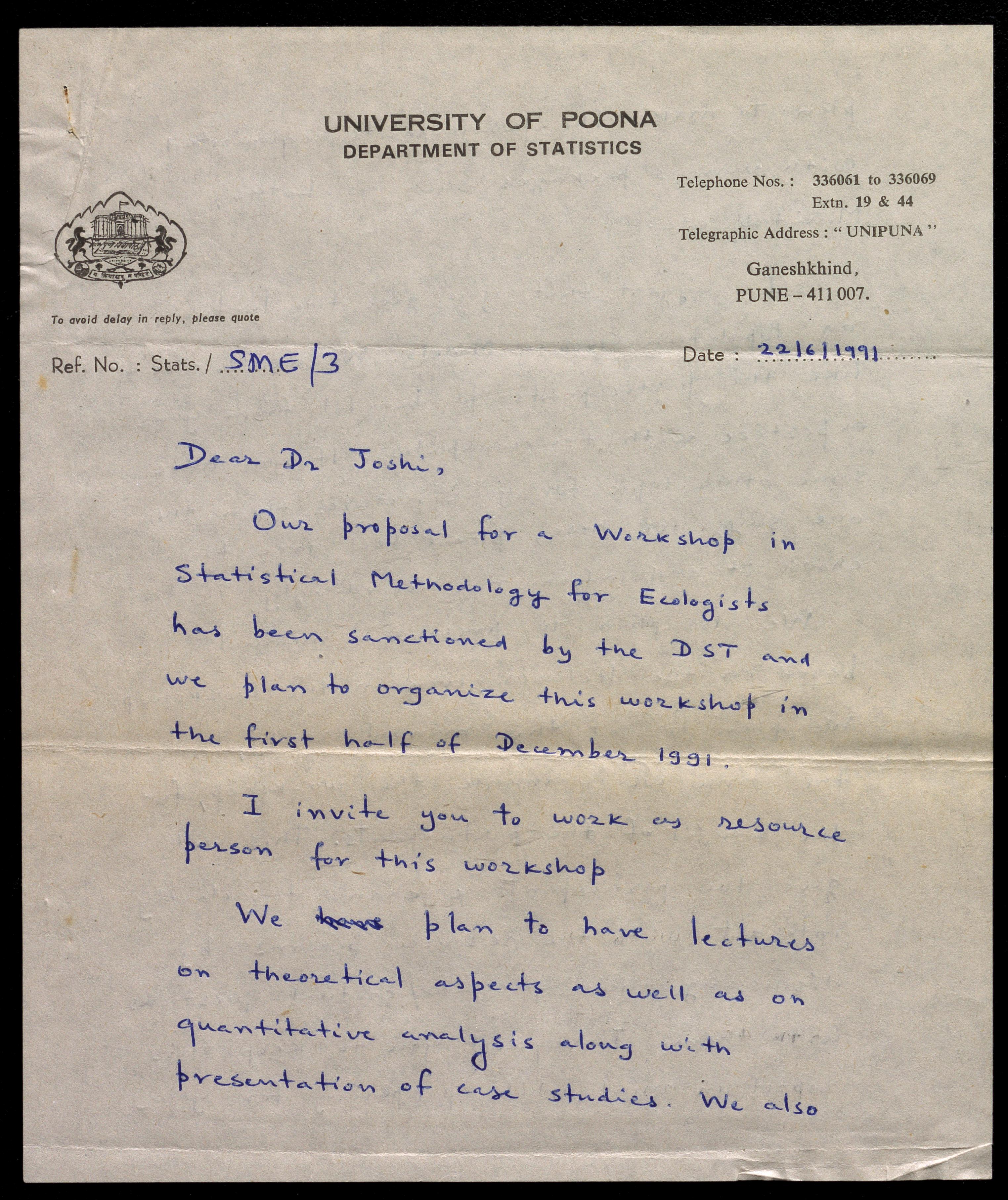 Copyright may not have been assigned to Archives, National Centre for Biological Sciences. The Archives at NCBS makes no representation that it is the copyright owner in all of its collections. The user must obtain all necessary rights and clearances before use of material and material may only be reproduced for academic and non-commercial use. See: https://archives.ncbs.res.in/access. In its capacity as an academic and educational centre, the Archives at NCBS is making digital objects available online for open viewing and research purposes. If you are the rightsholder or a representative of the rightsholder and would like to restrict access to any digital object displayed, please do reach out to us: https://archives.ncbs.res.in/takedown
