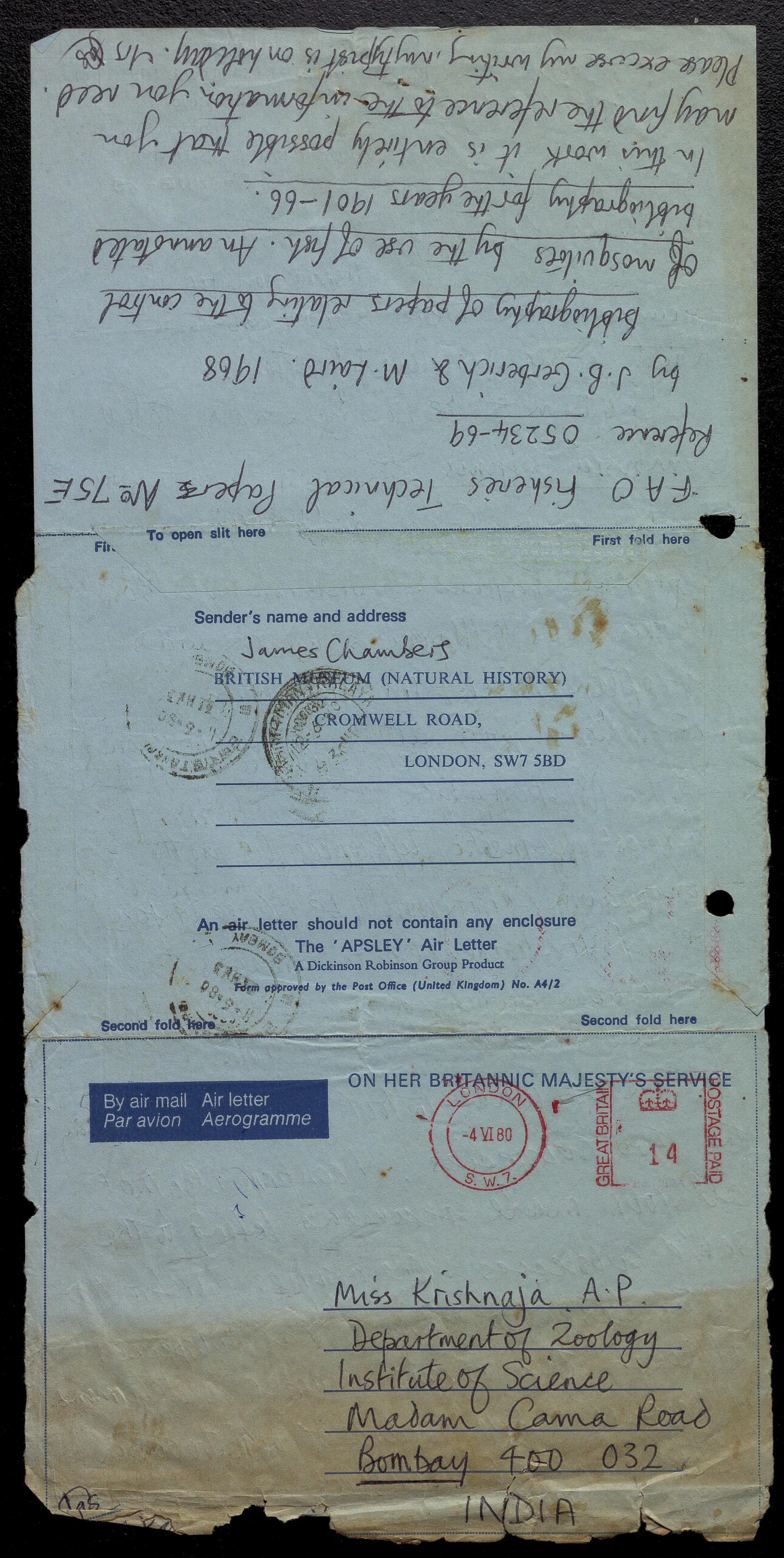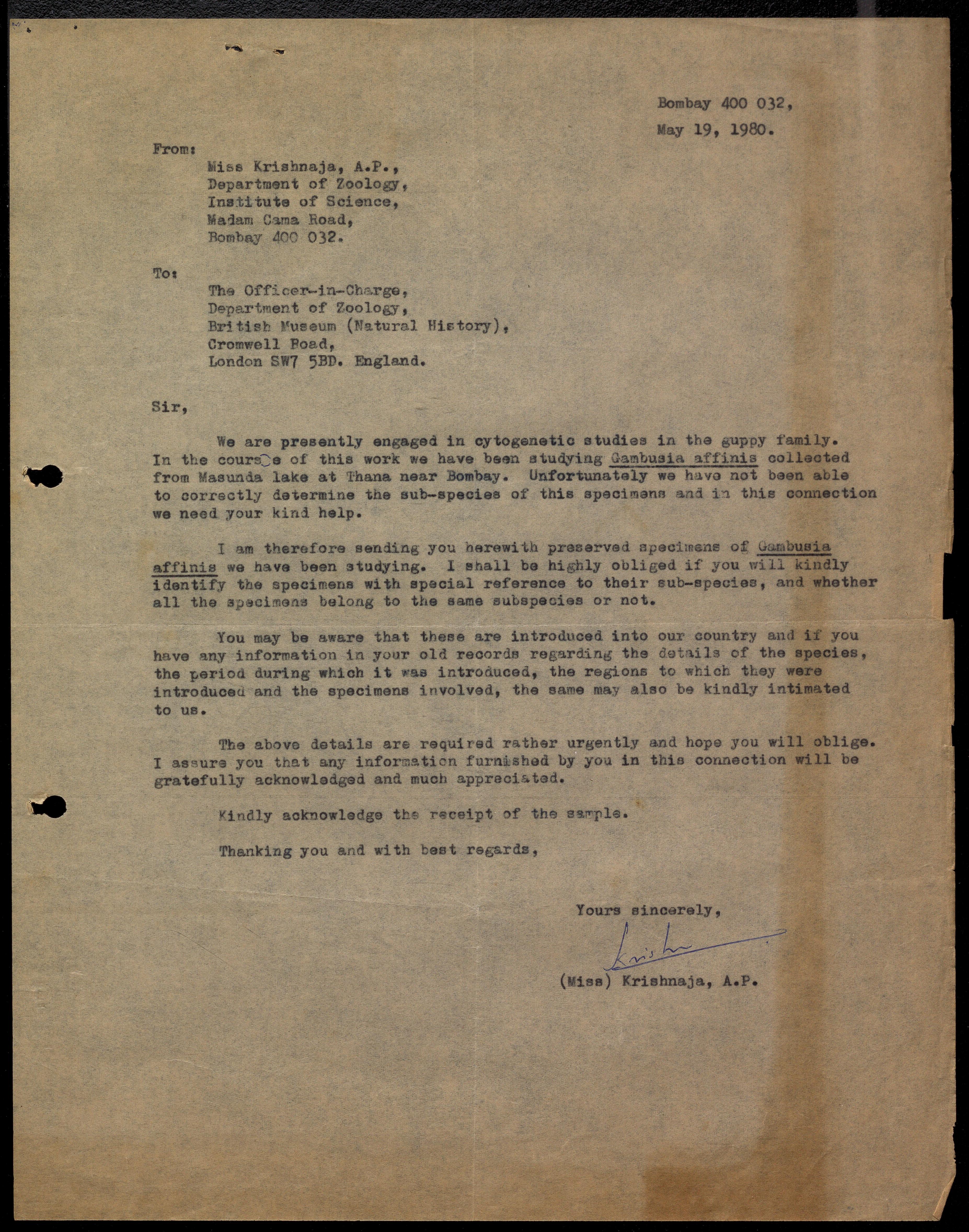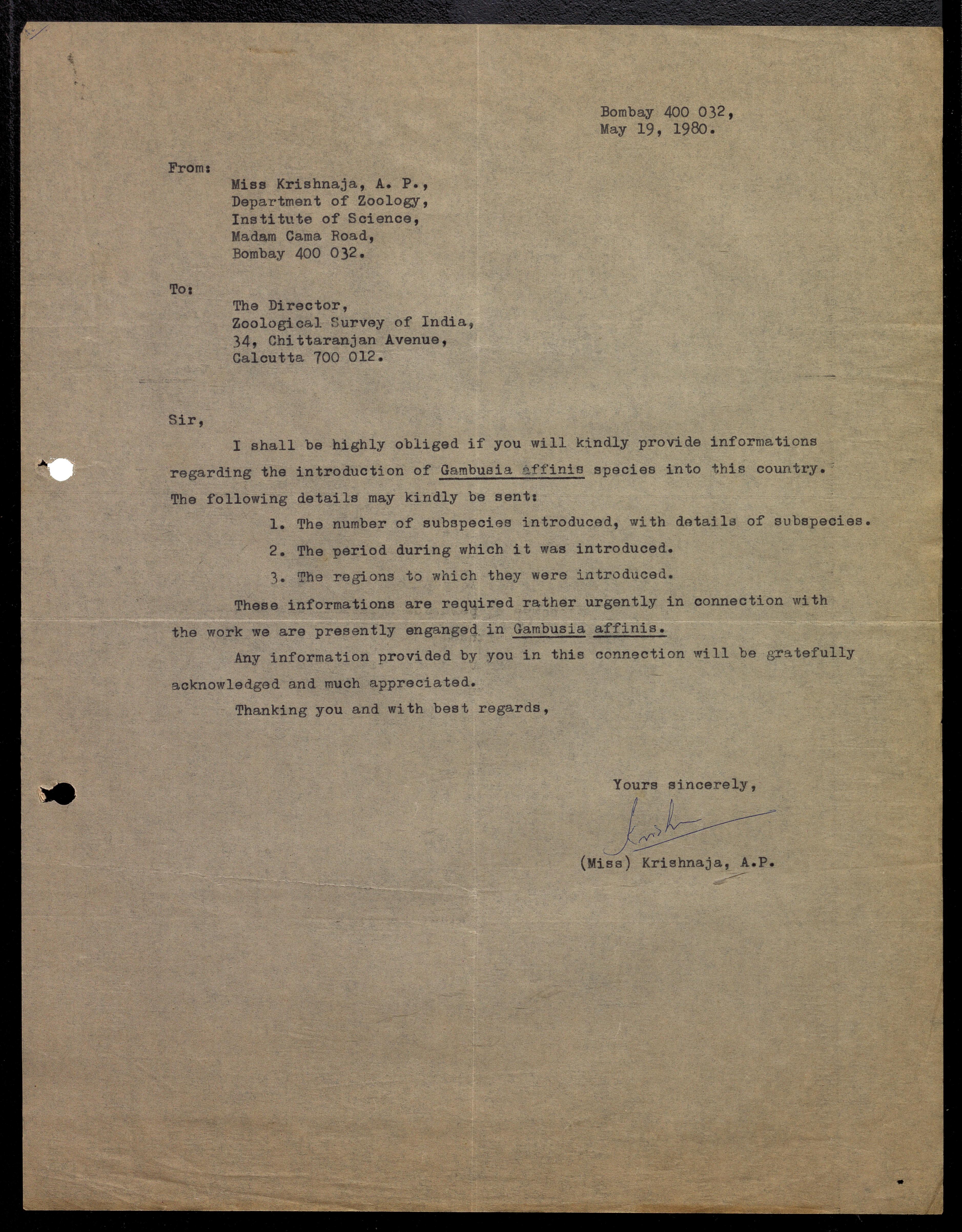 Copyright may not have been assigned to Archives, National Centre for Biological Sciences. The Archives at NCBS makes no representation that it is the copyright owner in all of its collections. The user must obtain all necessary rights and clearances before use of material and material may only be reproduced for academic and non-commercial use. See: https://archives.ncbs.res.in/access. In its capacity as an academic and educational centre, the Archives at NCBS is making digital objects available online for open viewing and research purposes. If you are the rightsholder or a representative of the rightsholder and would like to restrict access to any digital object displayed, please do reach out to us: https://archives.ncbs.res.in/takedown