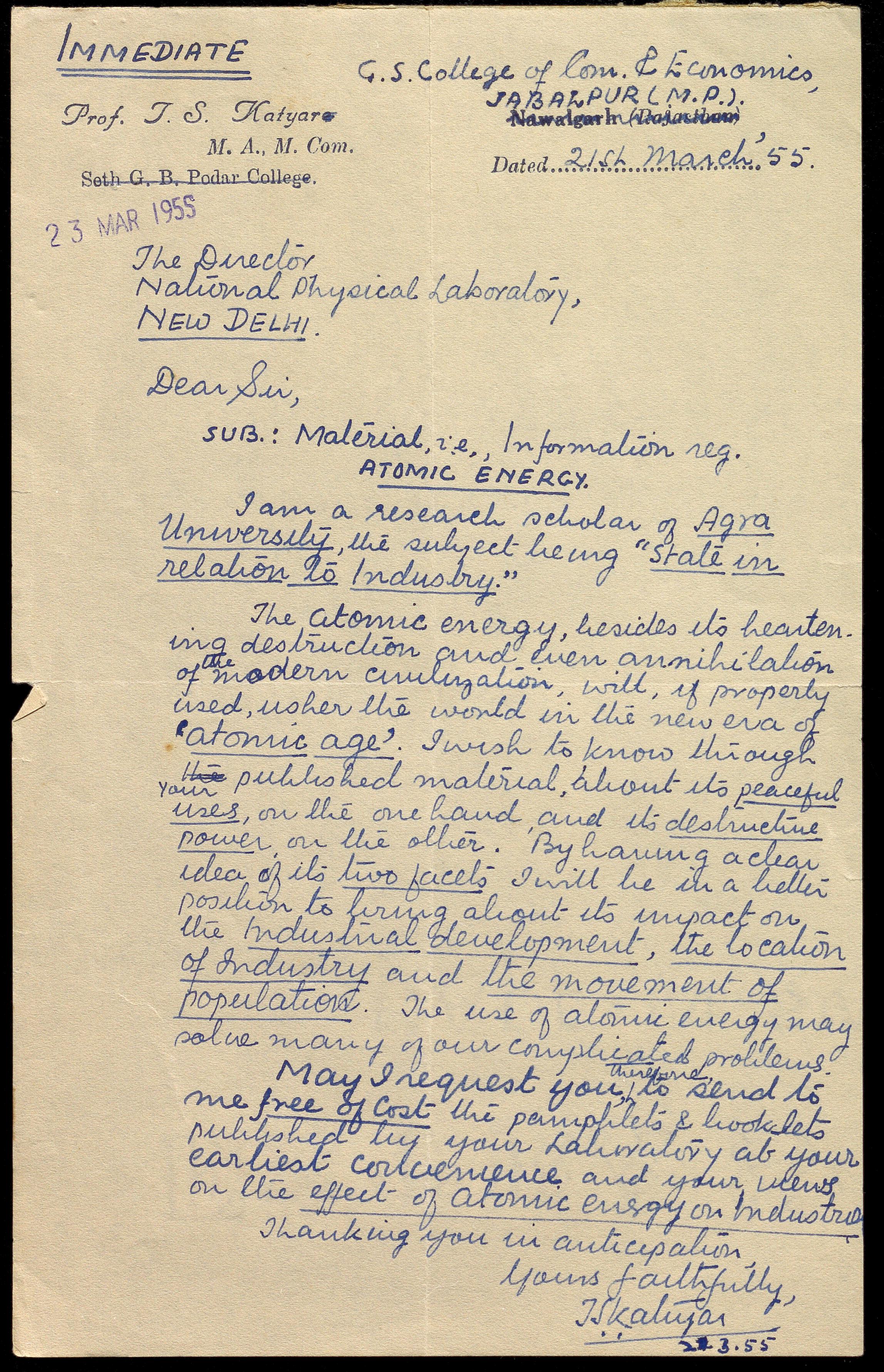 Copyright may not have been assigned to Archives, National Centre for Biological Sciences. The Archives at NCBS makes no representation that it is the copyright owner in all of its collections. The user must obtain all necessary rights and clearances before use of material and material may only be reproduced for academic and non-commercial use. See: https://archives.ncbs.res.in/access. In its capacity as an academic and educational centre, the Archives at NCBS is making digital objects available online for open viewing and research purposes. If you are the rightsholder or a representative of the rightsholder and would like to restrict access to any digital object displayed, please do reach out to us: https://archives.ncbs.res.in/takedown