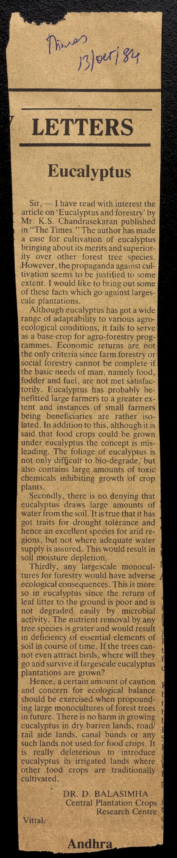 Copyright may not have been assigned to Archives, National Centre for Biological Sciences. The Archives at NCBS makes no representation that it is the copyright owner in all of its collections. The user must obtain all necessary rights and clearances before use of material and material may only be reproduced for academic and non-commercial use. See: https://archives.ncbs.res.in/access. In its capacity as an academic and educational centre, the Archives at NCBS is making digital objects available online for open viewing and research purposes. If you are the rightsholder or a representative of the rightsholder and would like to restrict access to any digital object displayed, please do reach out to us: https://archives.ncbs.res.in/takedown