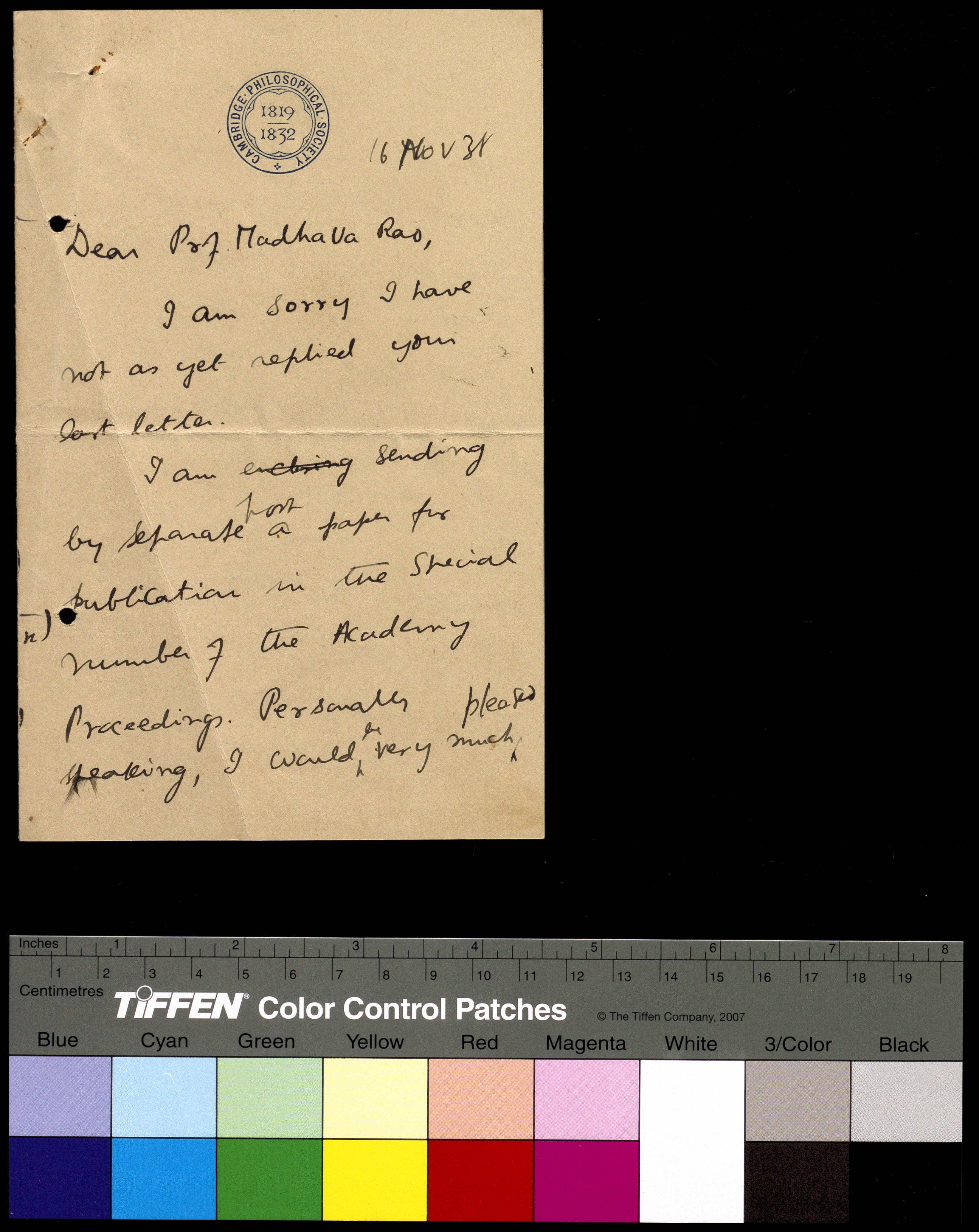 Copyright may not have been assigned to Archives, National Centre for Biological Sciences. The Archives at NCBS makes no representation that it is the copyright owner in all of its collections. The user must obtain all necessary rights and clearances before use of material and material may only be reproduced for academic and non-commercial use. See: https://archives.ncbs.res.in/access. In its capacity as an academic and educational centre, the Archives at NCBS is making digital objects available online for open viewing and research purposes. If you are the rightsholder or a representative of the rightsholder and would like to restrict access to any digital object displayed, please do reach out to us: https://archives.ncbs.res.in/takedown
