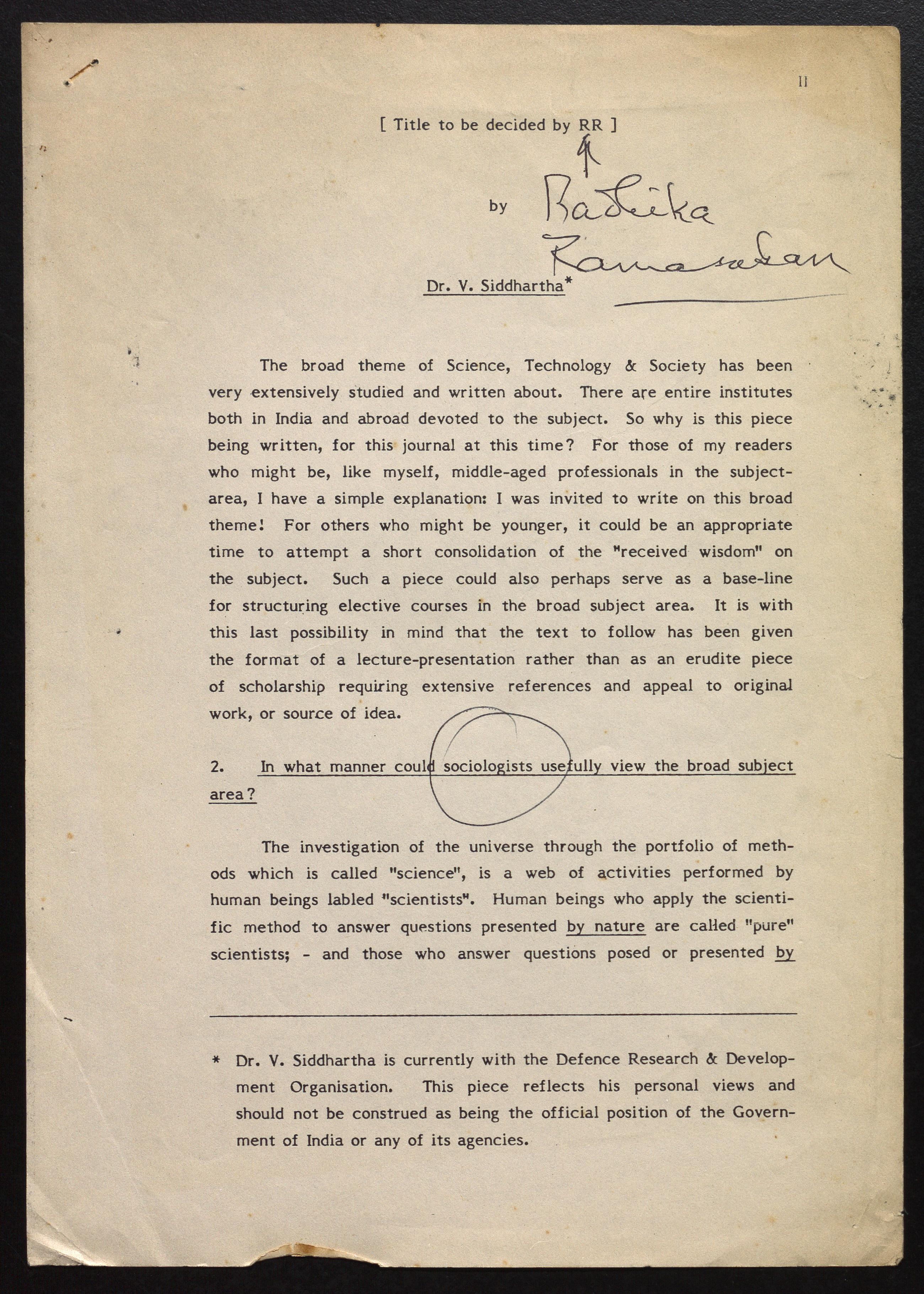 Copyright may not have been assigned to Archives, National Centre for Biological Sciences. The Archives at NCBS makes no representation that it is the copyright owner in all of its collections. The user must obtain all necessary rights and clearances before use of material and material may only be reproduced for academic and non-commercial use. See: https://archives.ncbs.res.in/access. In its capacity as an academic and educational centre, the Archives at NCBS is making digital objects available online for open viewing and research purposes. If you are the rightsholder or a representative of the rightsholder and would like to restrict access to any digital object displayed, please do reach out to us: https://archives.ncbs.res.in/takedown