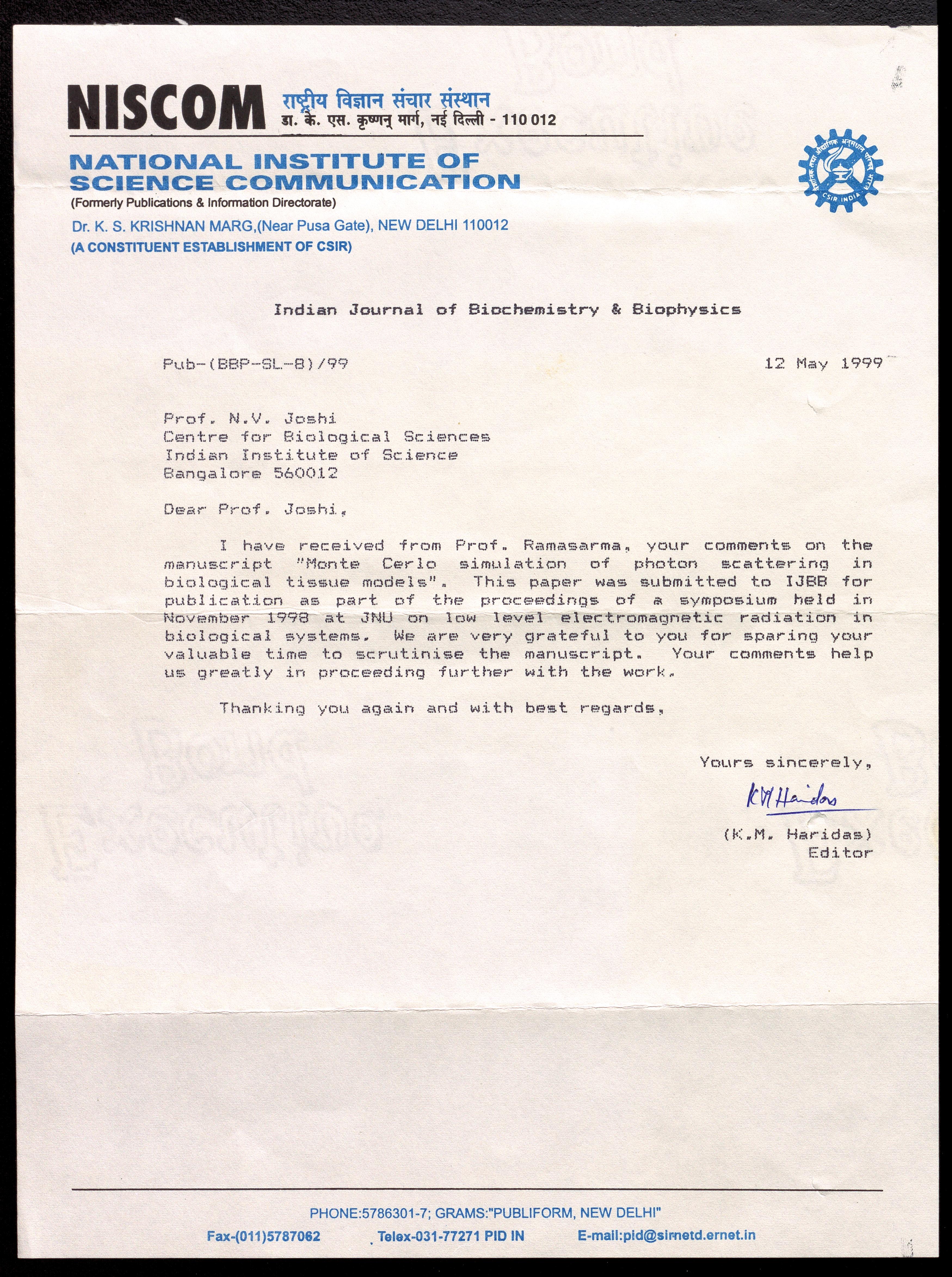 Copyright may not have been assigned to Archives, National Centre for Biological Sciences. The Archives at NCBS makes no representation that it is the copyright owner in all of its collections. The user must obtain all necessary rights and clearances before use of material and material may only be reproduced for academic and non-commercial use. See: https://archives.ncbs.res.in/access. In its capacity as an academic and educational centre, the Archives at NCBS is making digital objects available online for open viewing and research purposes. If you are the rightsholder or a representative of the rightsholder and would like to restrict access to any digital object displayed, please do reach out to us: https://archives.ncbs.res.in/takedown