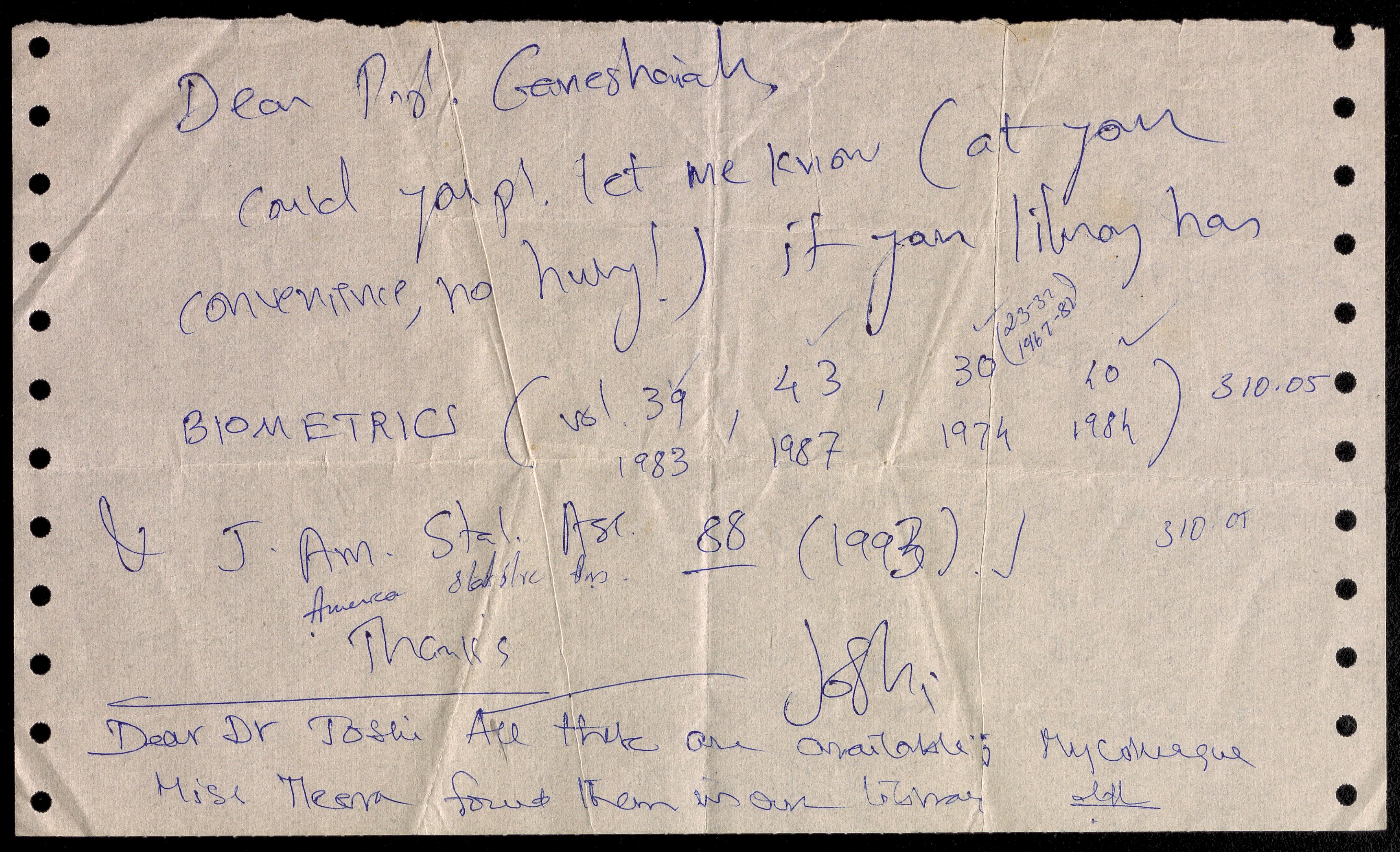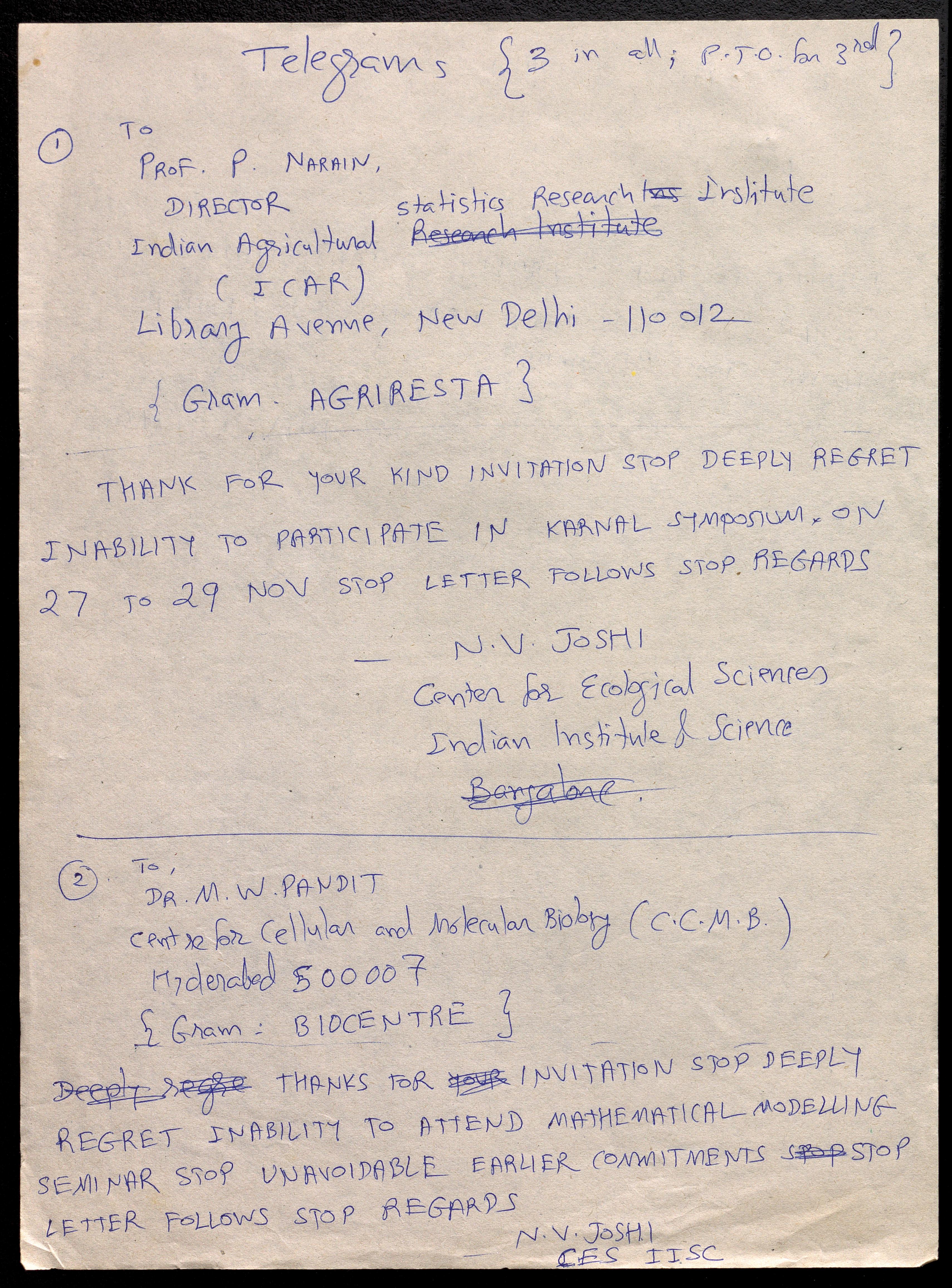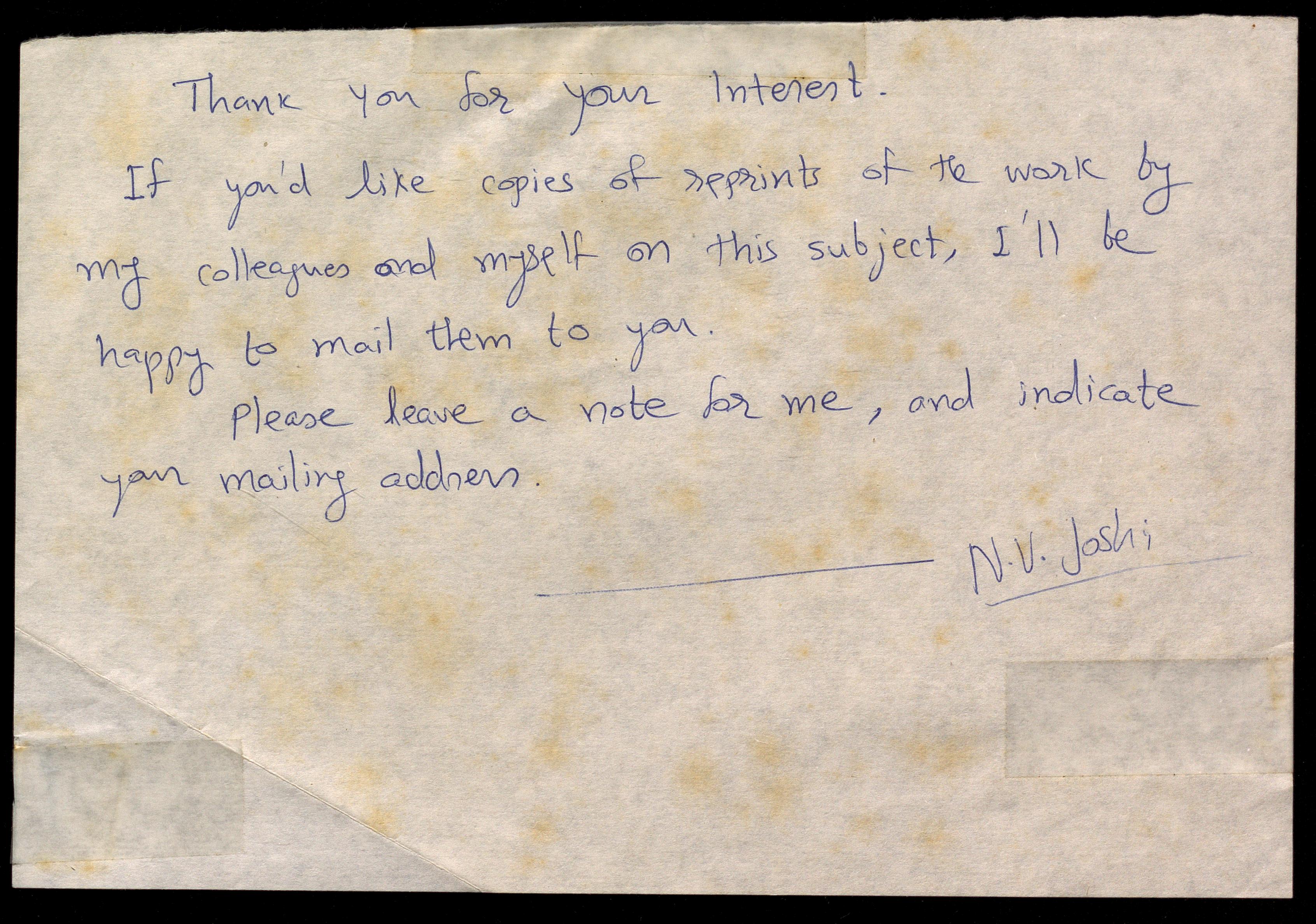 Copyright may not have been assigned to Archives, National Centre for Biological Sciences. The Archives at NCBS makes no representation that it is the copyright owner in all of its collections. The user must obtain all necessary rights and clearances before use of material and material may only be reproduced for academic and non-commercial use. See: https://archives.ncbs.res.in/access. In its capacity as an academic and educational centre, the Archives at NCBS is making digital objects available online for open viewing and research purposes. If you are the rightsholder or a representative of the rightsholder and would like to restrict access to any digital object displayed, please do reach out to us: https://archives.ncbs.res.in/takedown