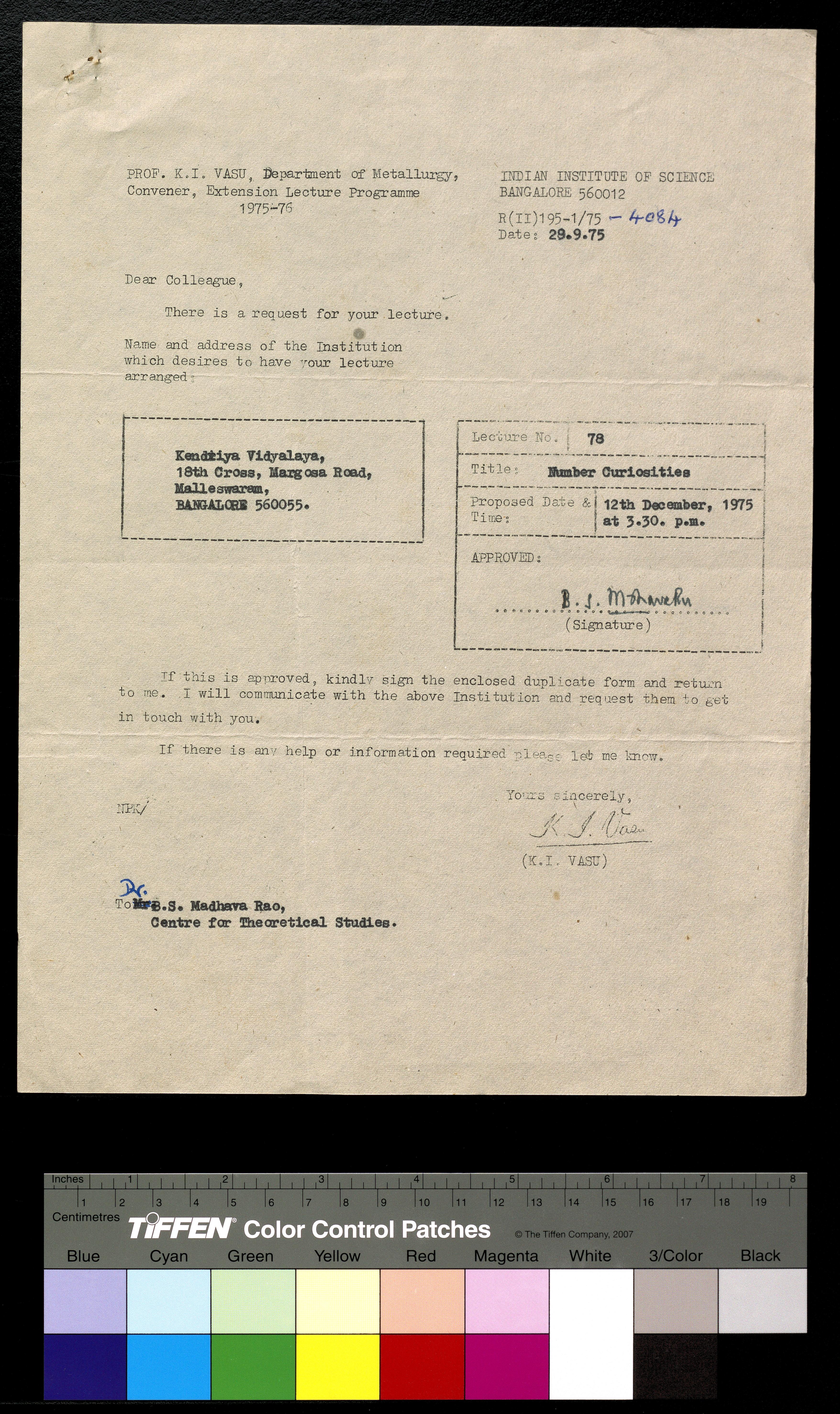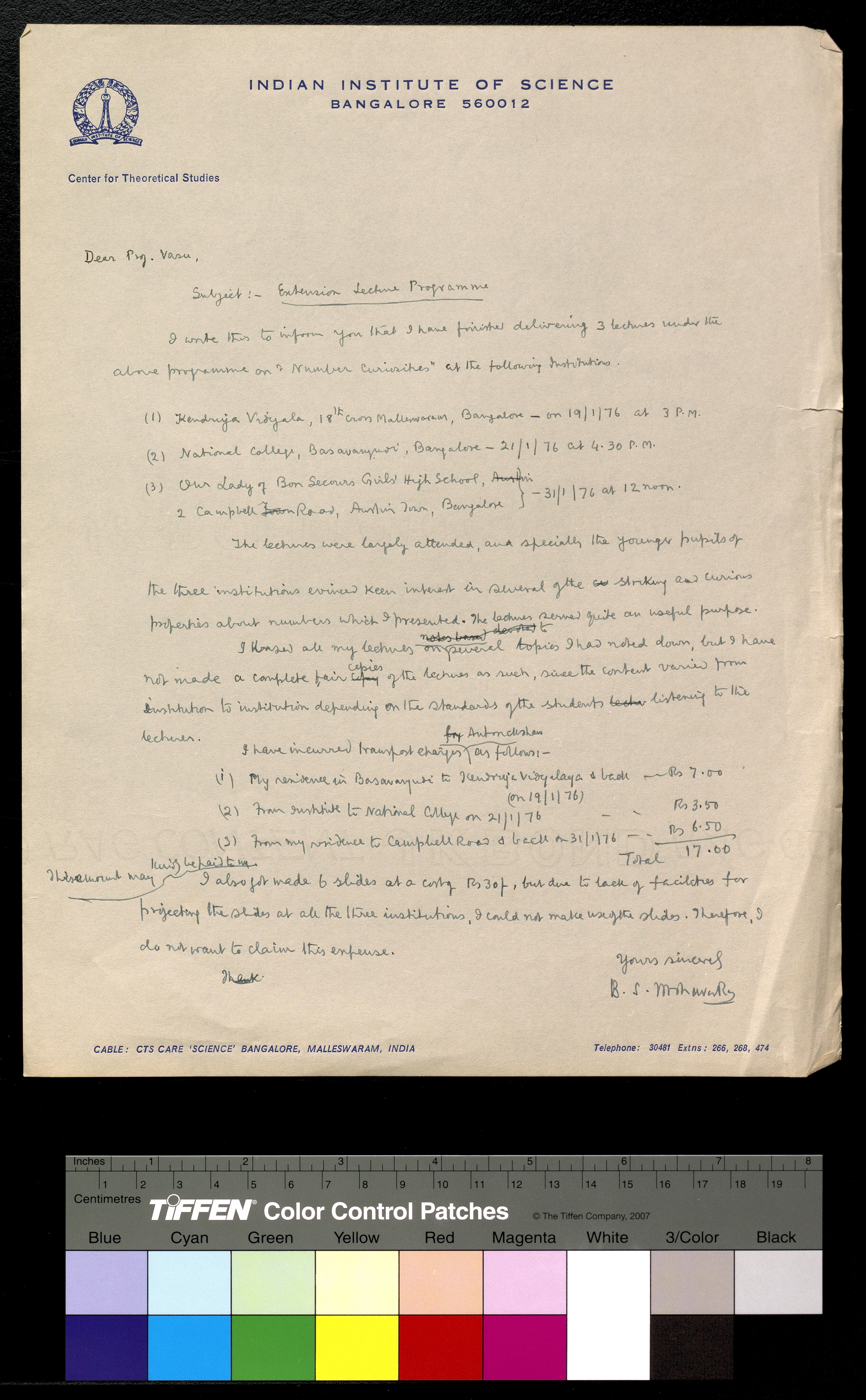 Copyright may not have been assigned to Archives, National Centre for Biological Sciences. The Archives at NCBS makes no representation that it is the copyright owner in all of its collections. The user must obtain all necessary rights and clearances before use of material and material may only be reproduced for academic and non-commercial use. See: https://archives.ncbs.res.in/access. In its capacity as an academic and educational centre, the Archives at NCBS is making digital objects available online for open viewing and research purposes. If you are the rightsholder or a representative of the rightsholder and would like to restrict access to any digital object displayed, please do reach out to us: https://archives.ncbs.res.in/takedown