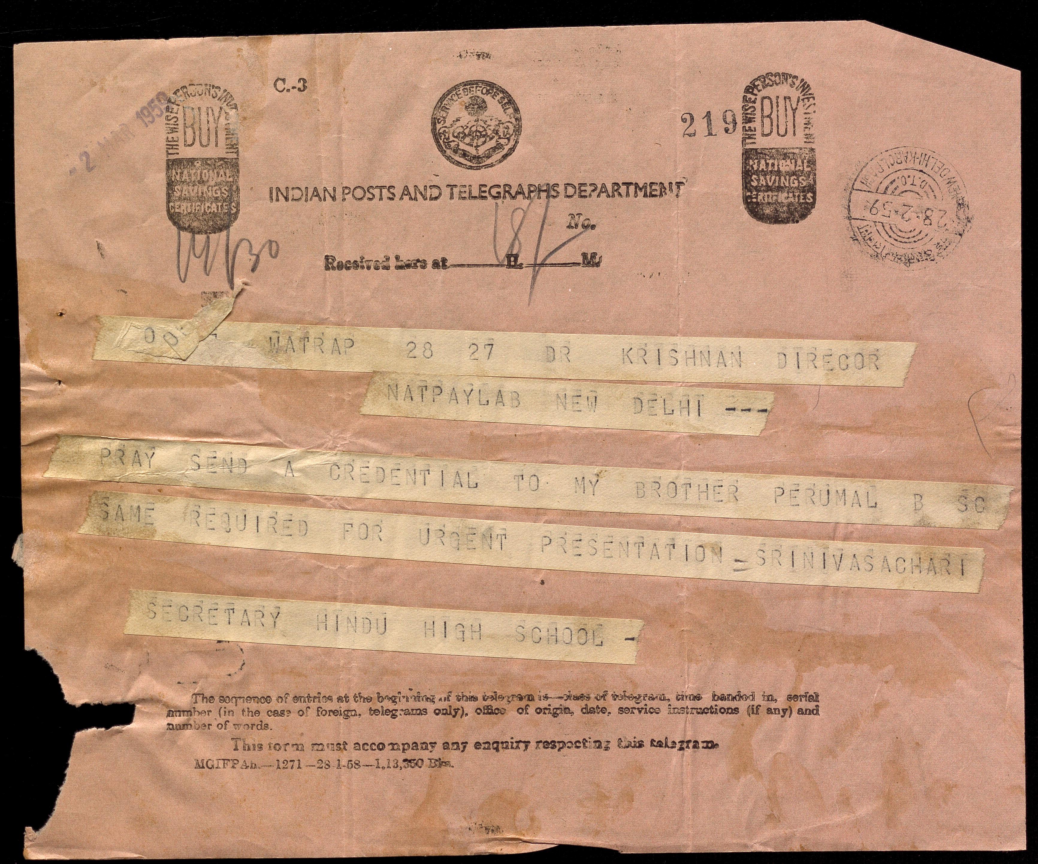 Copyright may not have been assigned to Archives, National Centre for Biological Sciences. The Archives at NCBS makes no representation that it is the copyright owner in all of its collections. The user must obtain all necessary rights and clearances before use of material and material may only be reproduced for academic and non-commercial use. See: https://archives.ncbs.res.in/access. In its capacity as an academic and educational centre, the Archives at NCBS is making digital objects available online for open viewing and research purposes. If you are the rightsholder or a representative of the rightsholder and would like to restrict access to any digital object displayed, please do reach out to us: https://archives.ncbs.res.in/takedown
