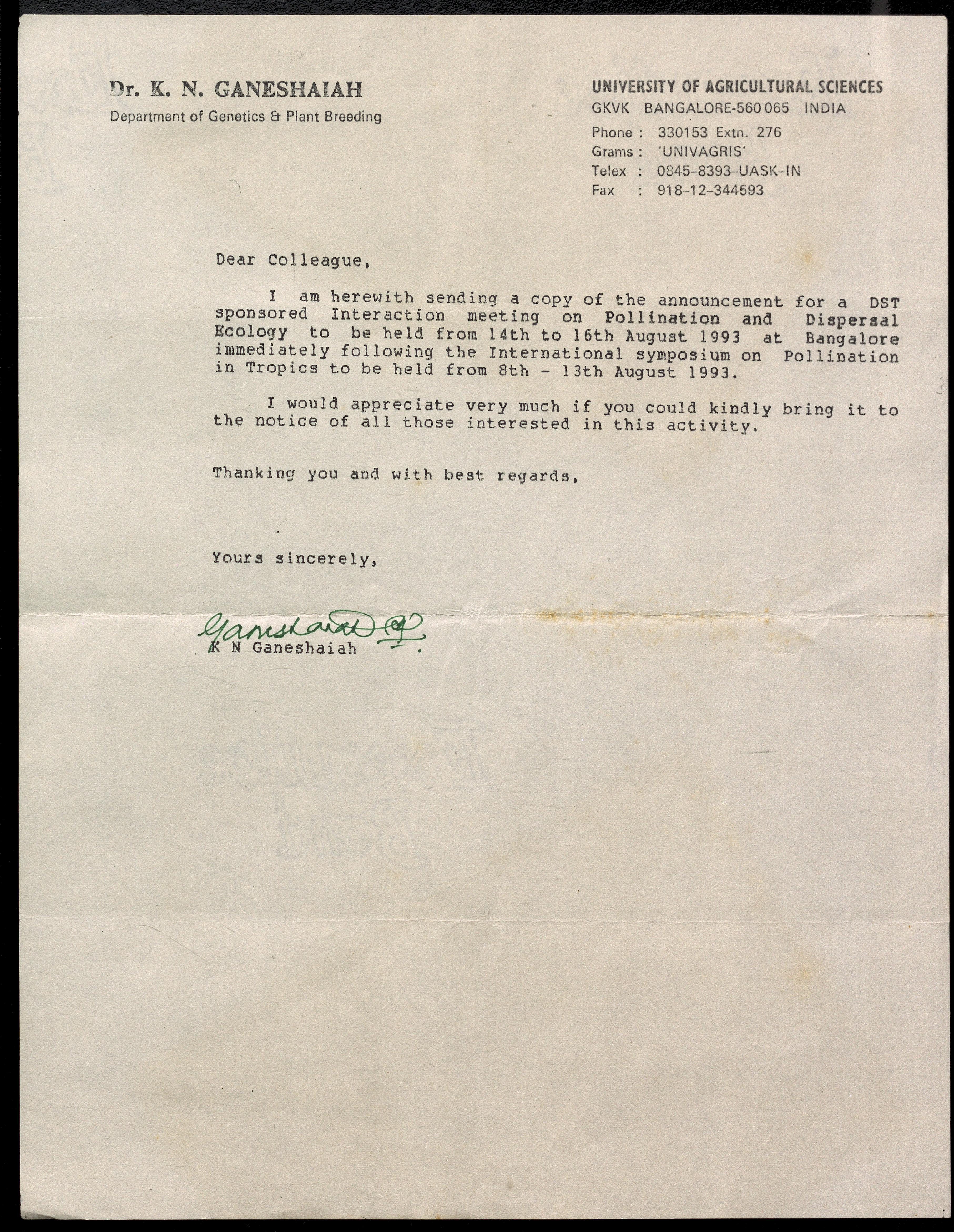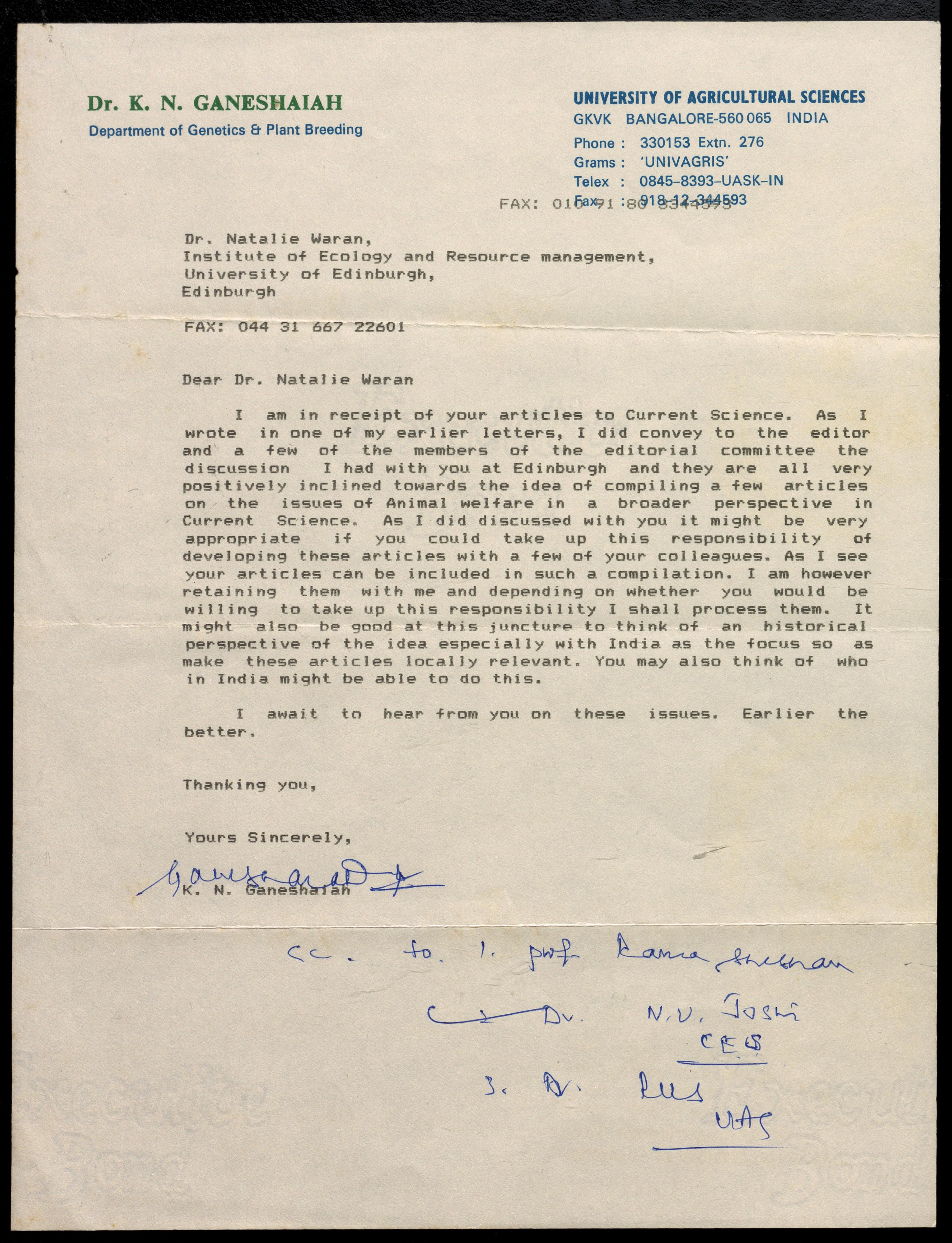 Copyright may not have been assigned to Archives, National Centre for Biological Sciences. The Archives at NCBS makes no representation that it is the copyright owner in all of its collections. The user must obtain all necessary rights and clearances before use of material and material may only be reproduced for academic and non-commercial use. See: https://archives.ncbs.res.in/access. In its capacity as an academic and educational centre, the Archives at NCBS is making digital objects available online for open viewing and research purposes. If you are the rightsholder or a representative of the rightsholder and would like to restrict access to any digital object displayed, please do reach out to us: https://archives.ncbs.res.in/takedown