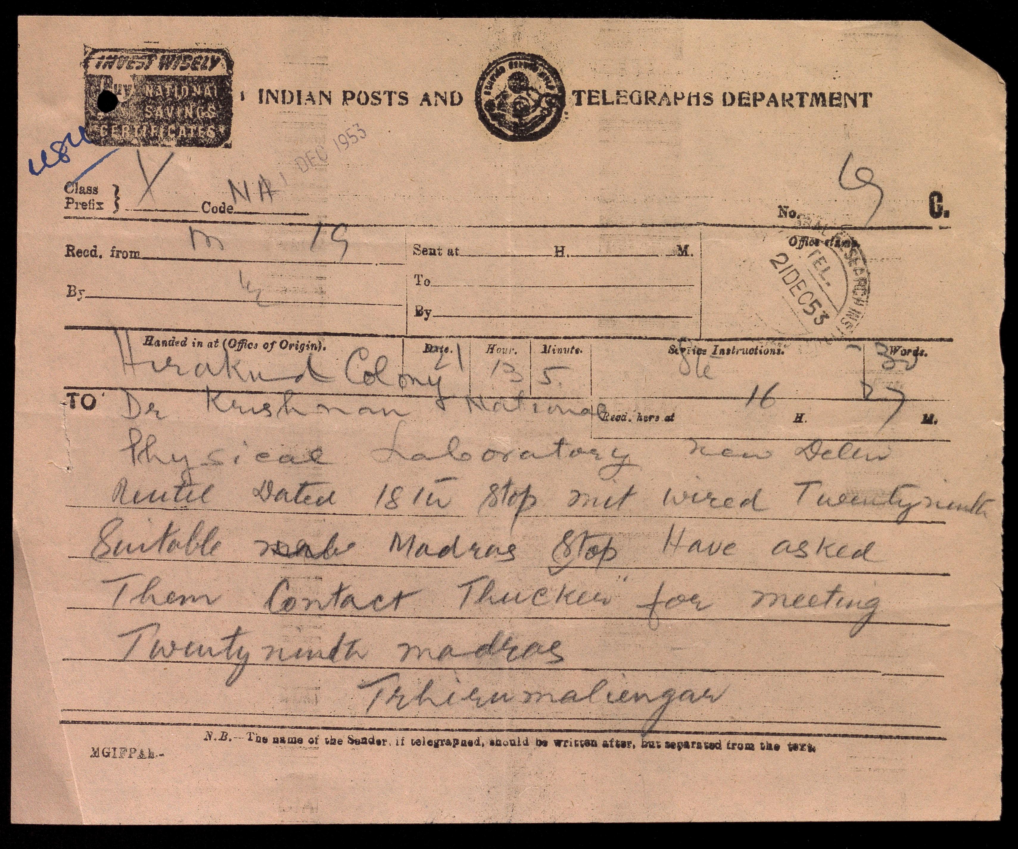 Copyright may not have been assigned to Archives, National Centre for Biological Sciences. The Archives at NCBS makes no representation that it is the copyright owner in all of its collections. The user must obtain all necessary rights and clearances before use of material and material may only be reproduced for academic and non-commercial use. See: https://archives.ncbs.res.in/access. In its capacity as an academic and educational centre, the Archives at NCBS is making digital objects available online for open viewing and research purposes. If you are the rightsholder or a representative of the rightsholder and would like to restrict access to any digital object displayed, please do reach out to us: https://archives.ncbs.res.in/takedown