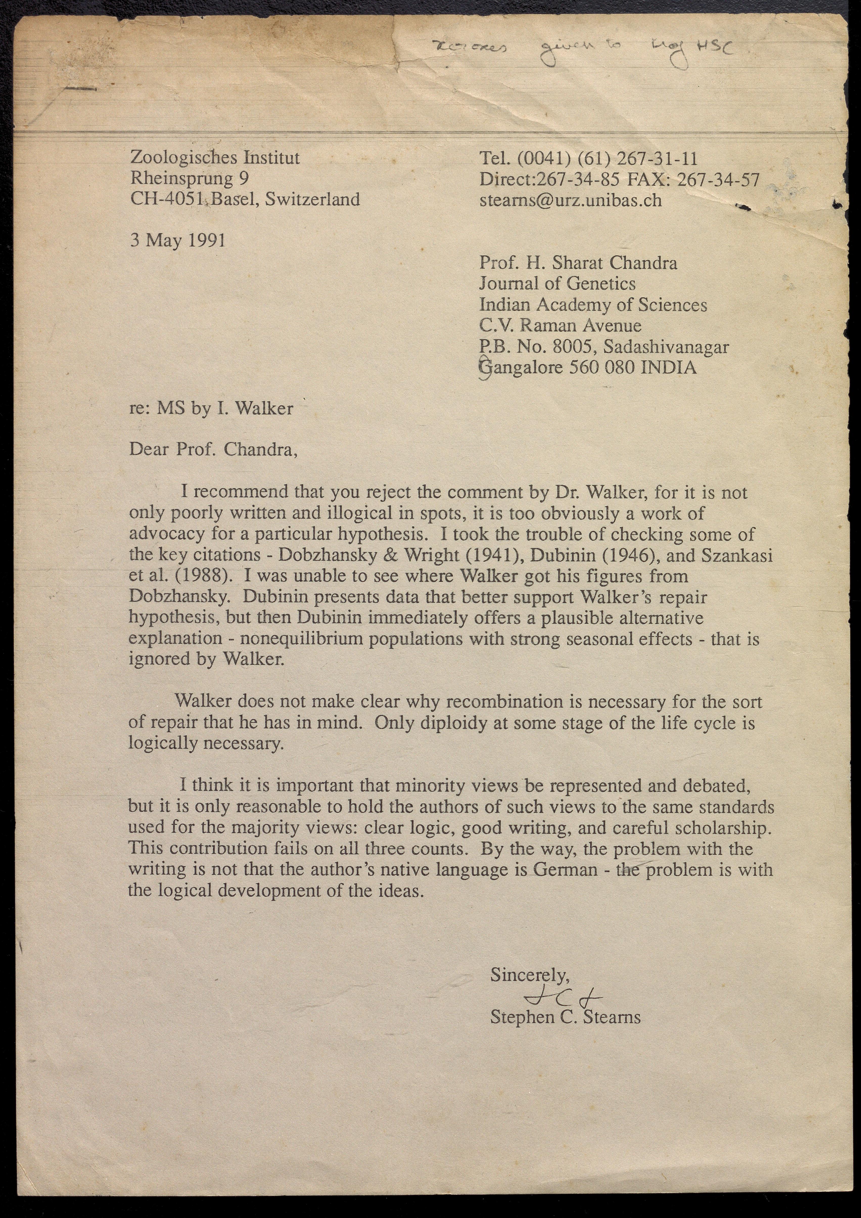 Copyright may not have been assigned to Archives, National Centre for Biological Sciences. The Archives at NCBS makes no representation that it is the copyright owner in all of its collections. The user must obtain all necessary rights and clearances before use of material and material may only be reproduced for academic and non-commercial use. See: https://archives.ncbs.res.in/access. In its capacity as an academic and educational centre, the Archives at NCBS is making digital objects available online for open viewing and research purposes. If you are the rightsholder or a representative of the rightsholder and would like to restrict access to any digital object displayed, please do reach out to us: https://archives.ncbs.res.in/takedown