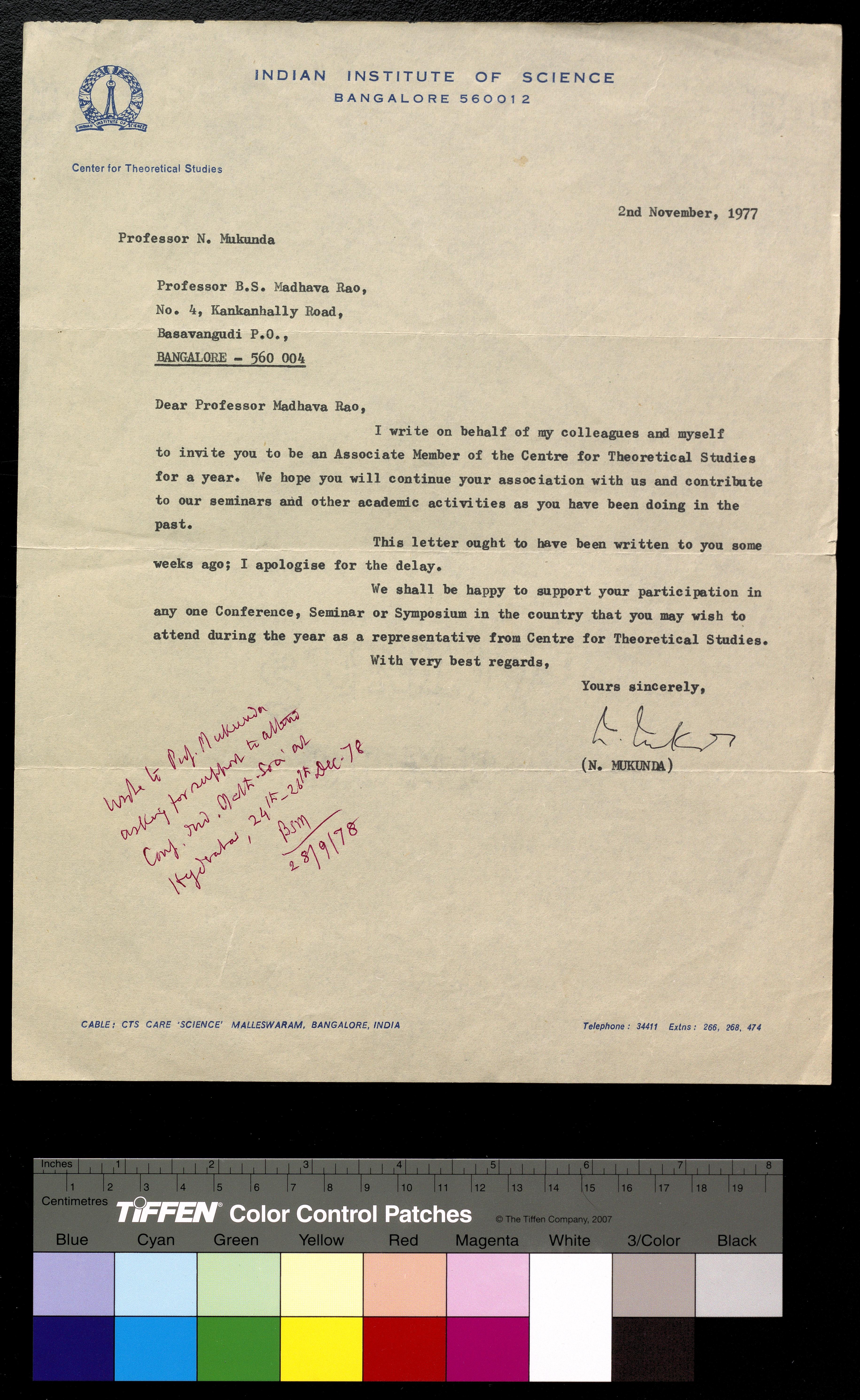 Copyright may not have been assigned to Archives, National Centre for Biological Sciences. The Archives at NCBS makes no representation that it is the copyright owner in all of its collections. The user must obtain all necessary rights and clearances before use of material and material may only be reproduced for academic and non-commercial use. See: https://archives.ncbs.res.in/access. In its capacity as an academic and educational centre, the Archives at NCBS is making digital objects available online for open viewing and research purposes. If you are the rightsholder or a representative of the rightsholder and would like to restrict access to any digital object displayed, please do reach out to us: https://archives.ncbs.res.in/takedown