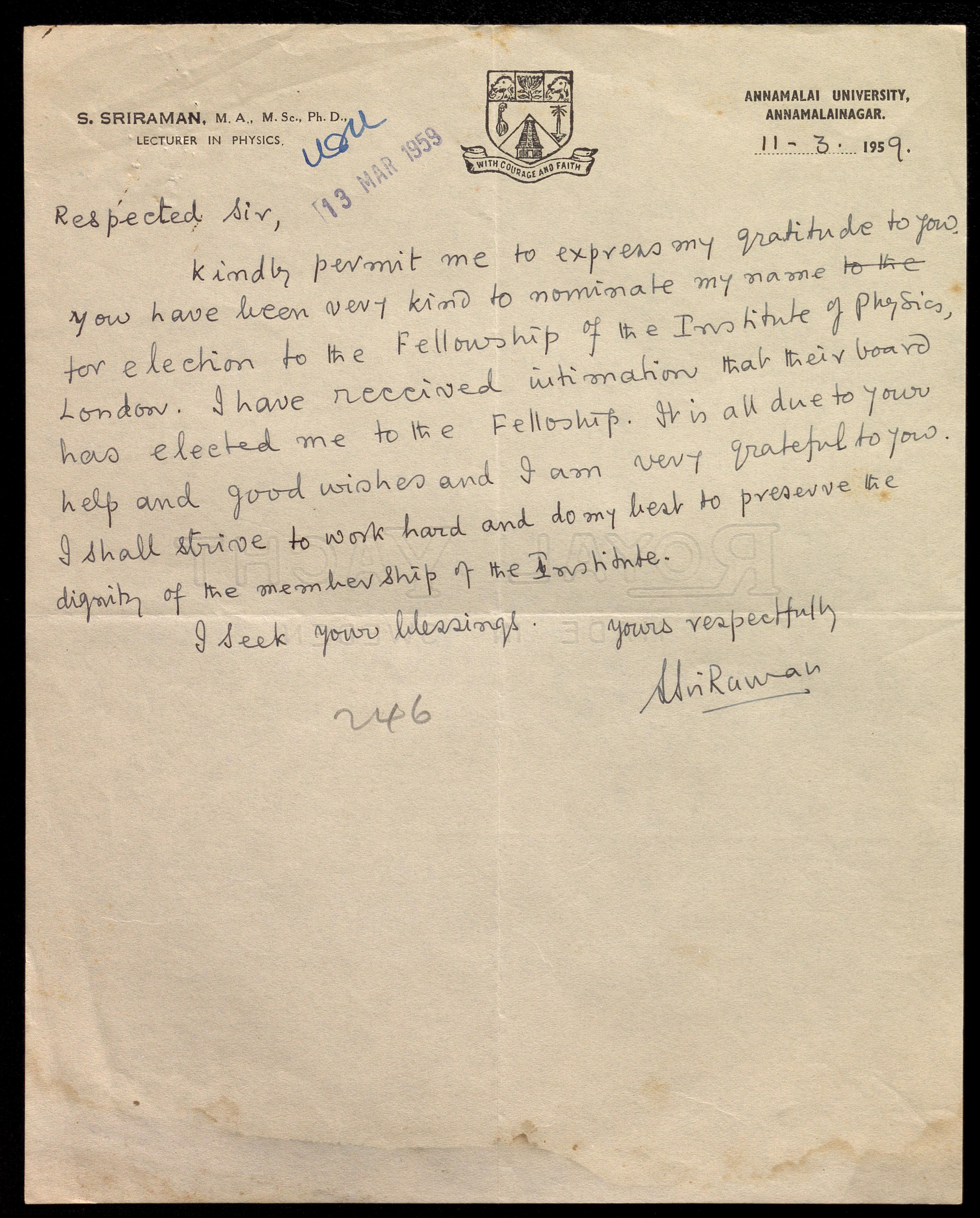 Copyright may not have been assigned to Archives, National Centre for Biological Sciences. The Archives at NCBS makes no representation that it is the copyright owner in all of its collections. The user must obtain all necessary rights and clearances before use of material and material may only be reproduced for academic and non-commercial use. See: https://archives.ncbs.res.in/access. In its capacity as an academic and educational centre, the Archives at NCBS is making digital objects available online for open viewing and research purposes. If you are the rightsholder or a representative of the rightsholder and would like to restrict access to any digital object displayed, please do reach out to us: https://archives.ncbs.res.in/takedown