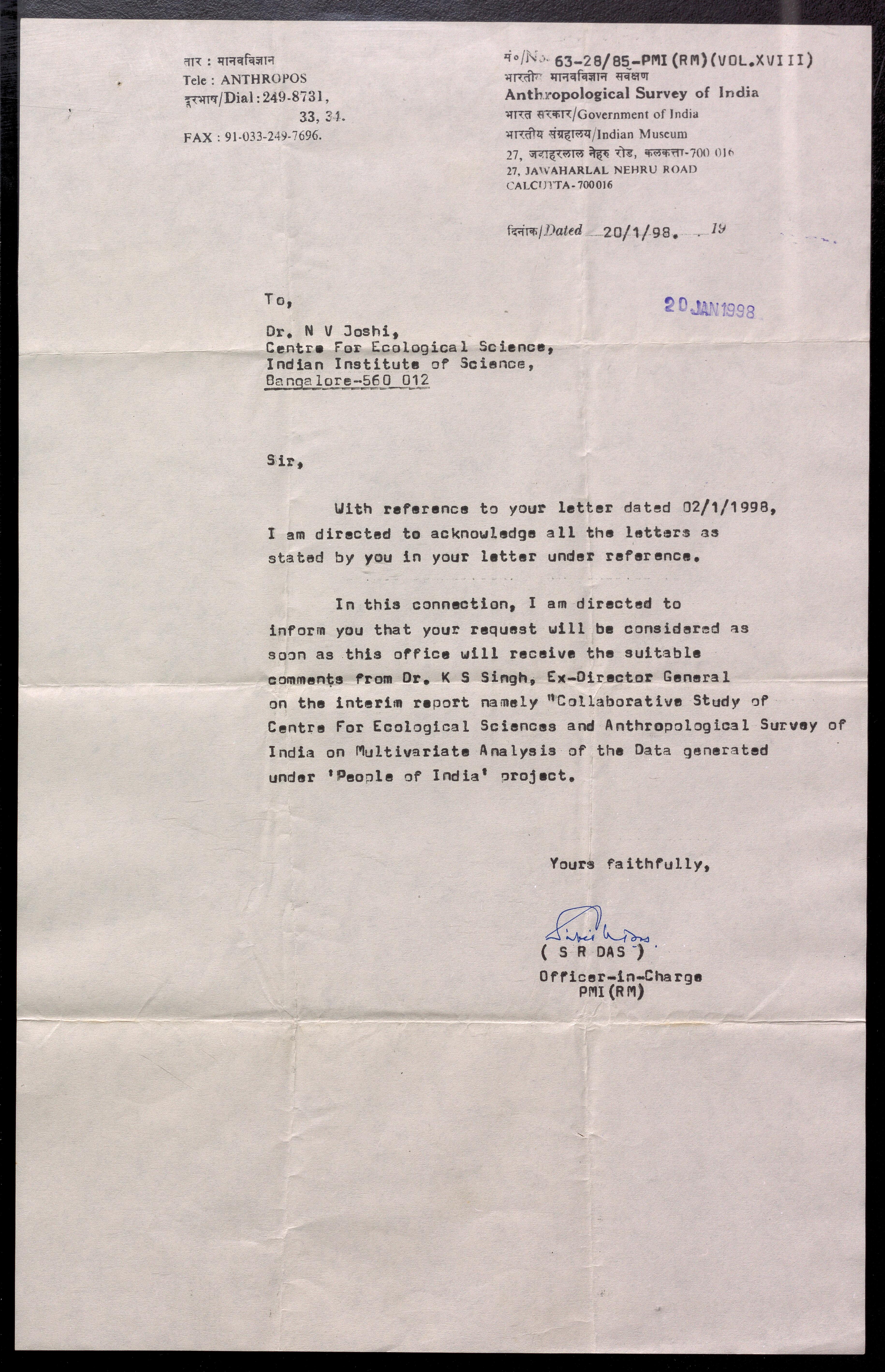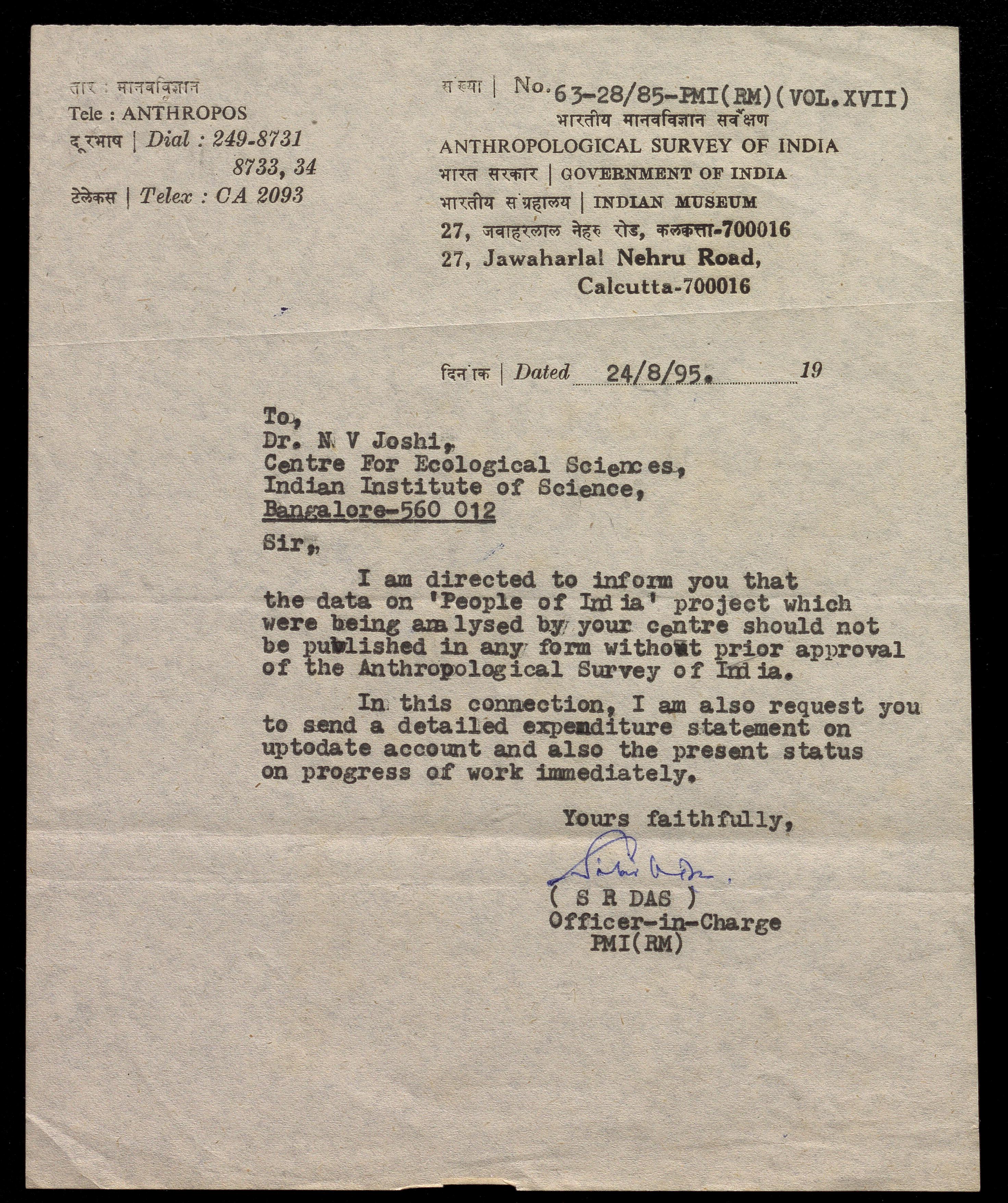Copyright may not have been assigned to Archives, National Centre for Biological Sciences. The Archives at NCBS makes no representation that it is the copyright owner in all of its collections. The user must obtain all necessary rights and clearances before use of material and material may only be reproduced for academic and non-commercial use. See: https://archives.ncbs.res.in/access. In its capacity as an academic and educational centre, the Archives at NCBS is making digital objects available online for open viewing and research purposes. If you are the rightsholder or a representative of the rightsholder and would like to restrict access to any digital object displayed, please do reach out to us: https://archives.ncbs.res.in/takedown