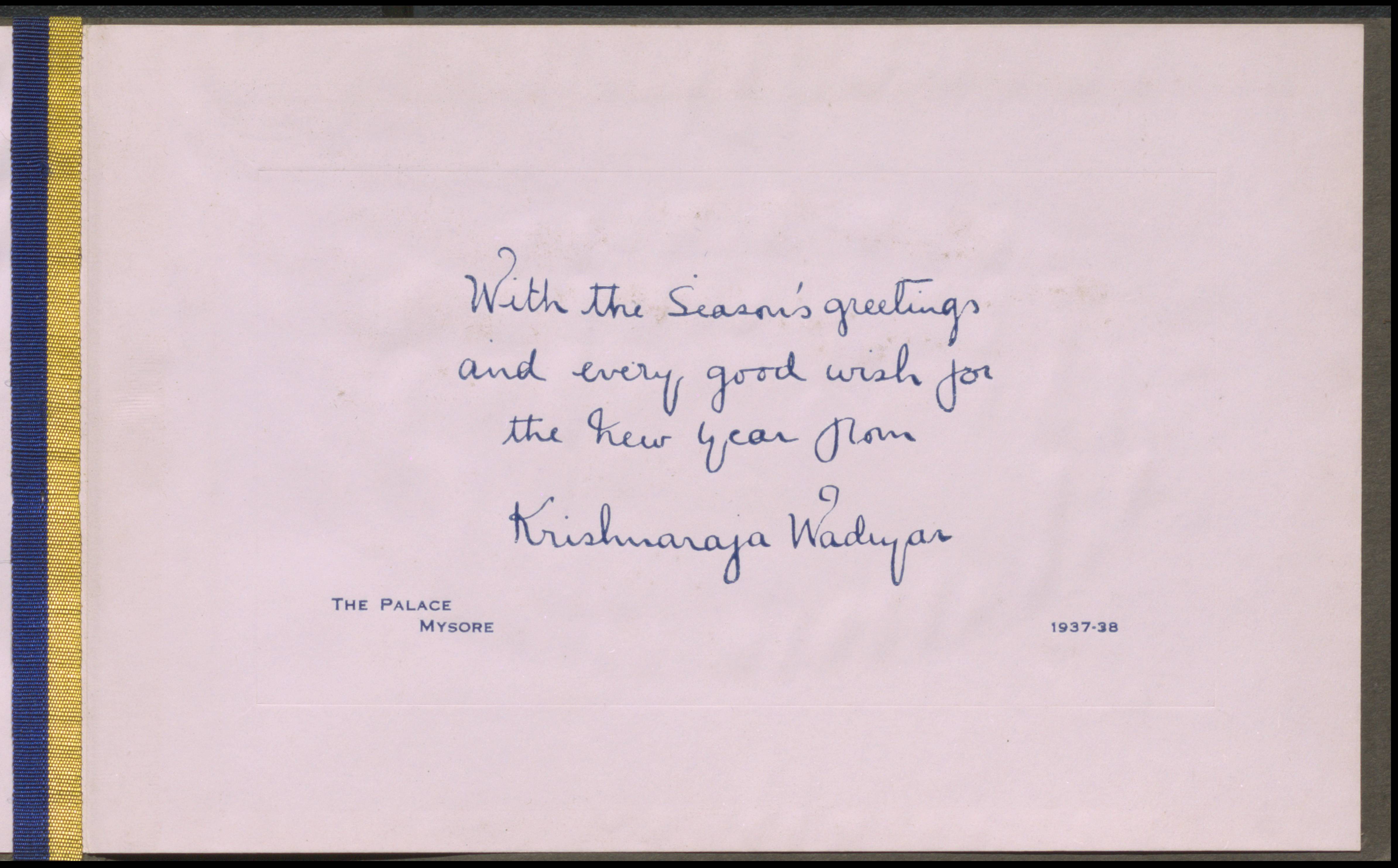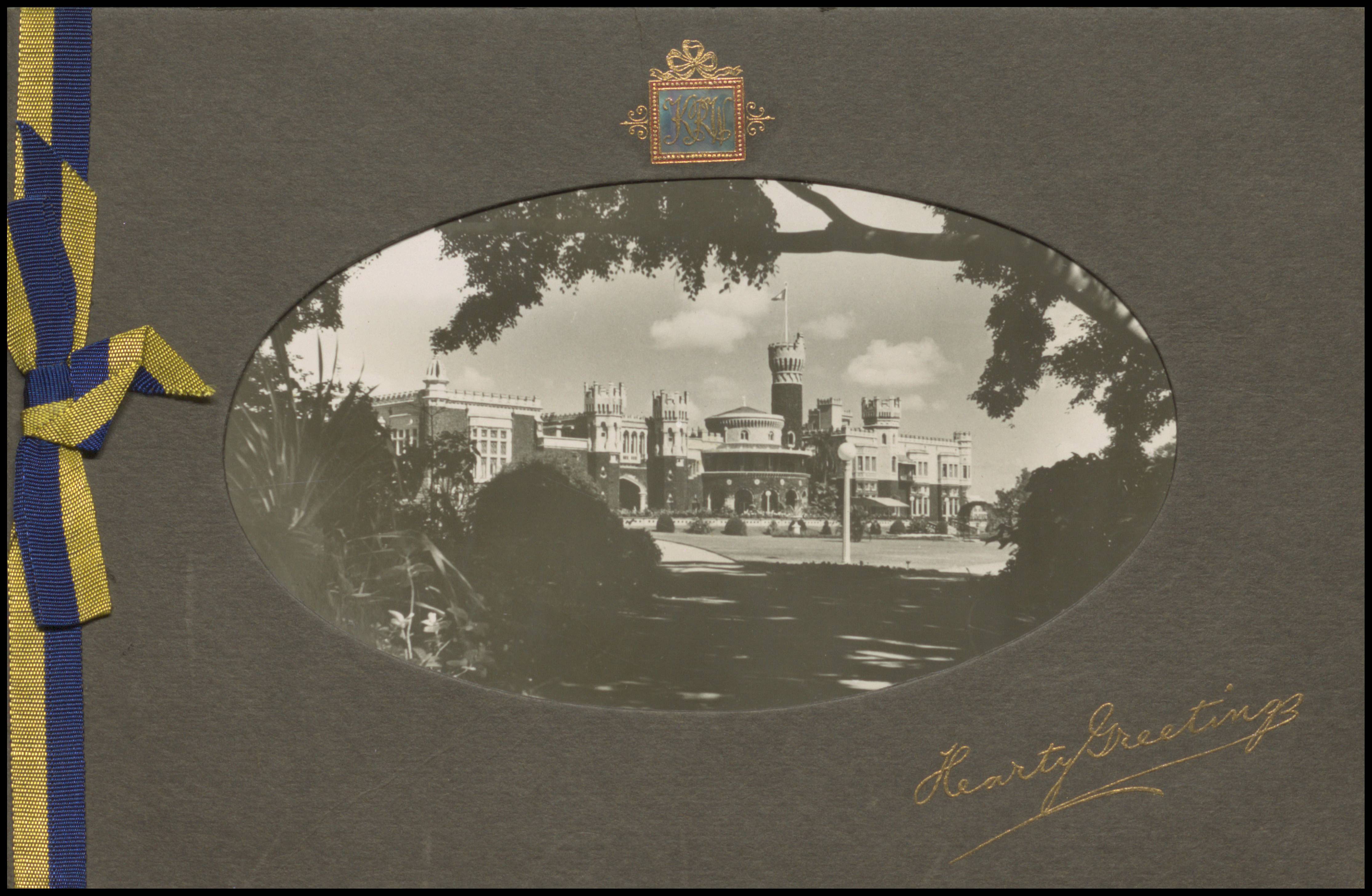 The Palace, Mysore -- Season's Greetings from Krishnaraja Wadiyar (Wodeyar), 1937-1938