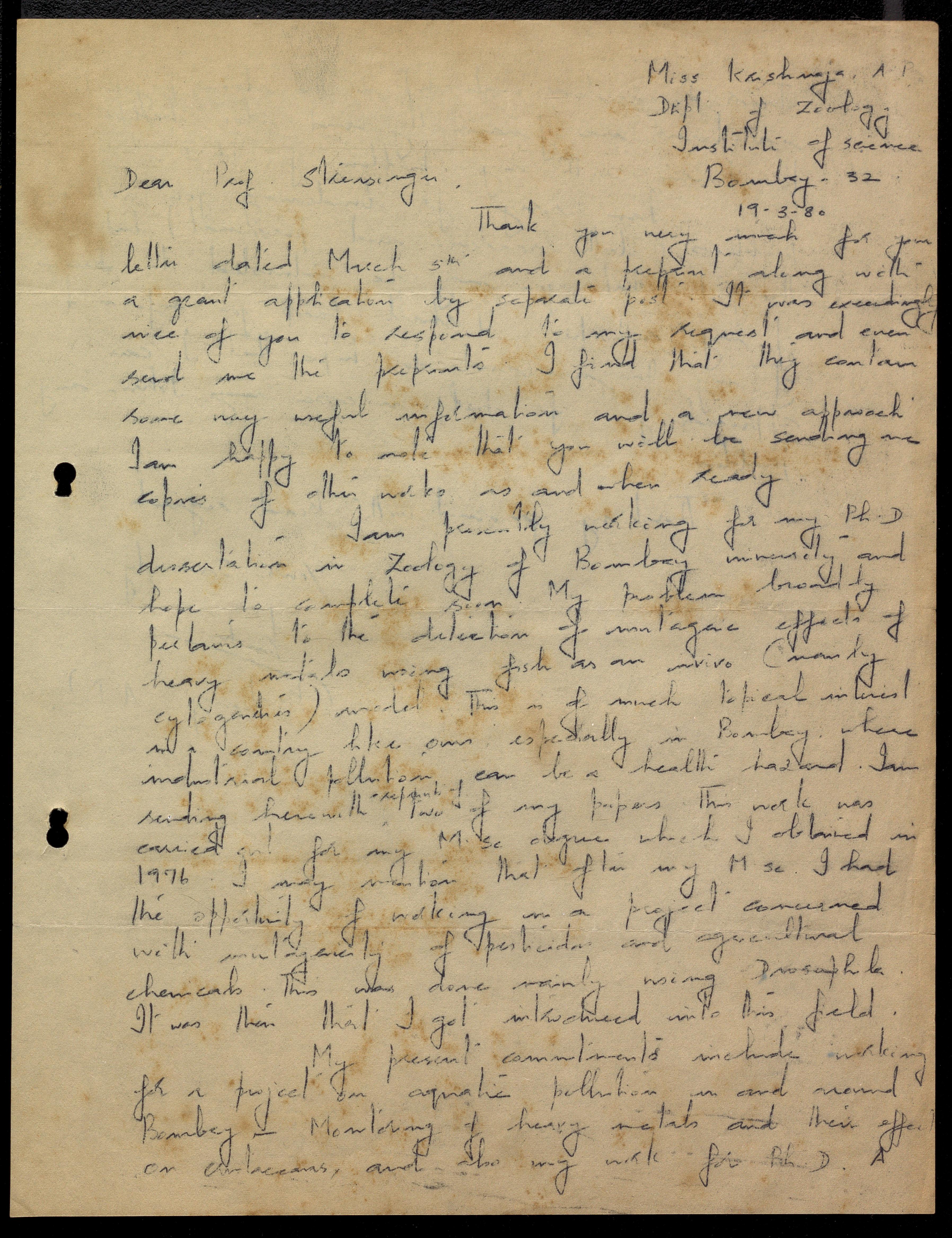 Copyright may not have been assigned to Archives, National Centre for Biological Sciences. The Archives at NCBS makes no representation that it is the copyright owner in all of its collections. The user must obtain all necessary rights and clearances before use of material and material may only be reproduced for academic and non-commercial use. See: https://archives.ncbs.res.in/access. In its capacity as an academic and educational centre, the Archives at NCBS is making digital objects available online for open viewing and research purposes. If you are the rightsholder or a representative of the rightsholder and would like to restrict access to any digital object displayed, please do reach out to us: https://archives.ncbs.res.in/takedown
