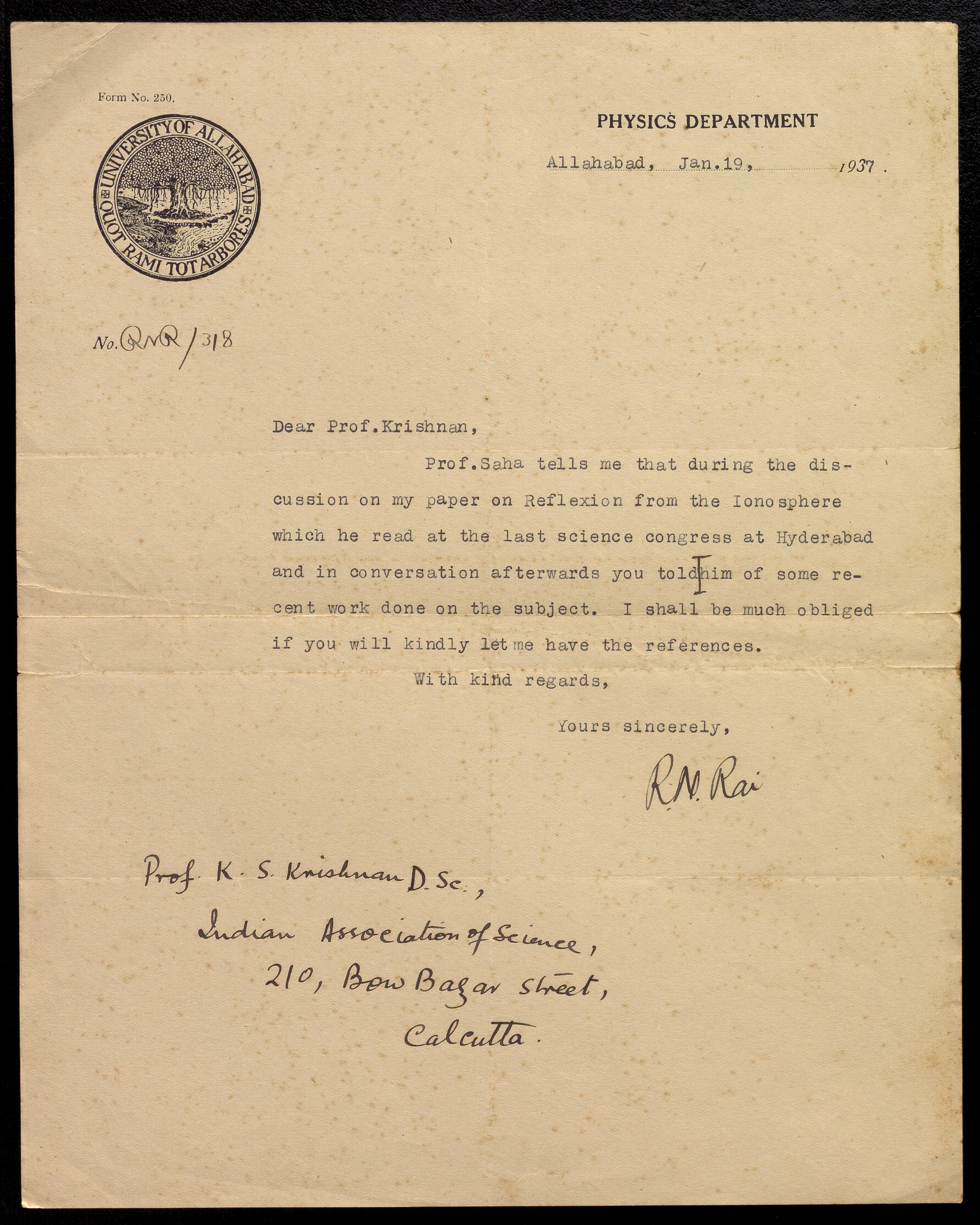 Copyright may not have been assigned to Archives, National Centre for Biological Sciences. The Archives at NCBS makes no representation that it is the copyright owner in all of its collections. The user must obtain all necessary rights and clearances before use of material and material may only be reproduced for academic and non-commercial use. See: https://archives.ncbs.res.in/access. In its capacity as an academic and educational centre, the Archives at NCBS is making digital objects available online for open viewing and research purposes. If you are the rightsholder or a representative of the rightsholder and would like to restrict access to any digital object displayed, please do reach out to us: https://archives.ncbs.res.in/takedown