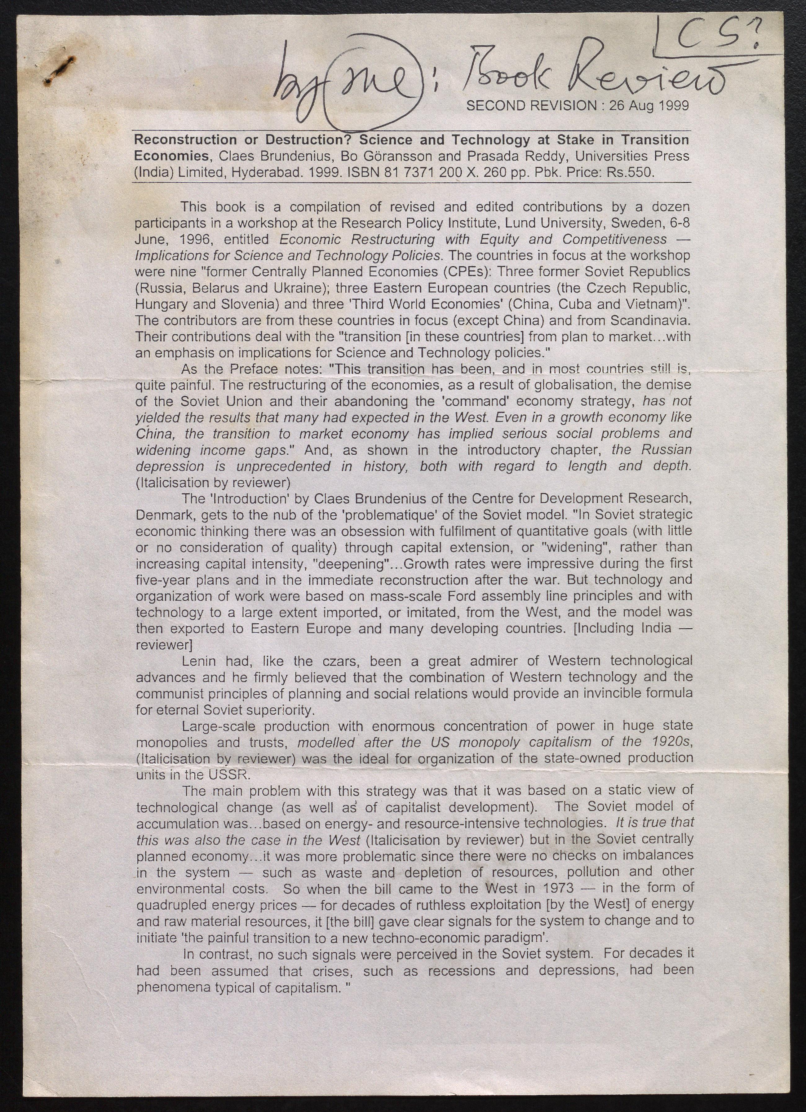 Copyright may not have been assigned to Archives, National Centre for Biological Sciences. The Archives at NCBS makes no representation that it is the copyright owner in all of its collections. The user must obtain all necessary rights and clearances before use of material and material may only be reproduced for academic and non-commercial use. See: https://archives.ncbs.res.in/access. In its capacity as an academic and educational centre, the Archives at NCBS is making digital objects available online for open viewing and research purposes. If you are the rightsholder or a representative of the rightsholder and would like to restrict access to any digital object displayed, please do reach out to us: https://archives.ncbs.res.in/takedown